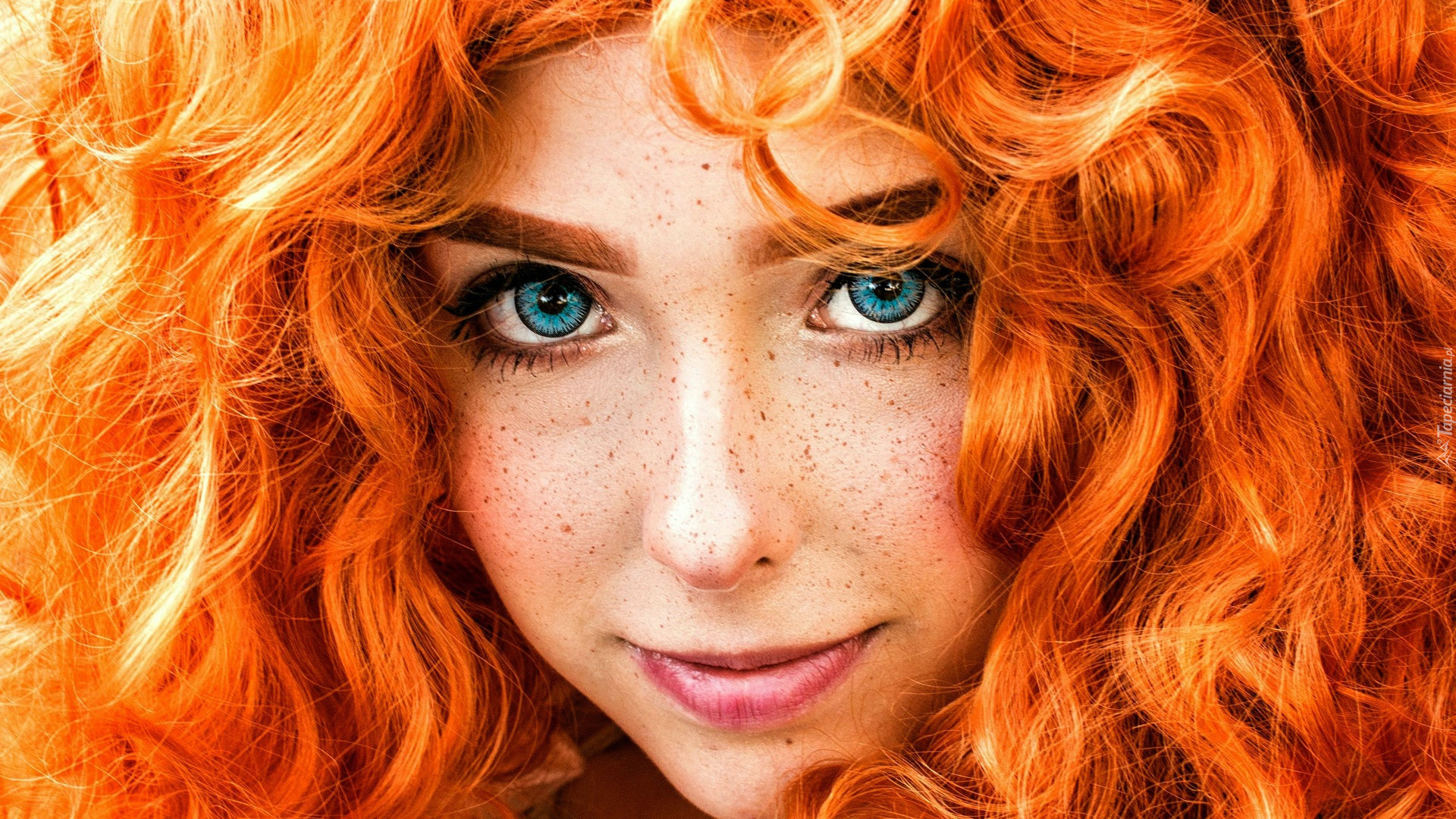 Edytor tapety: Rudowłosa dziewczyna z piegami na twarzy