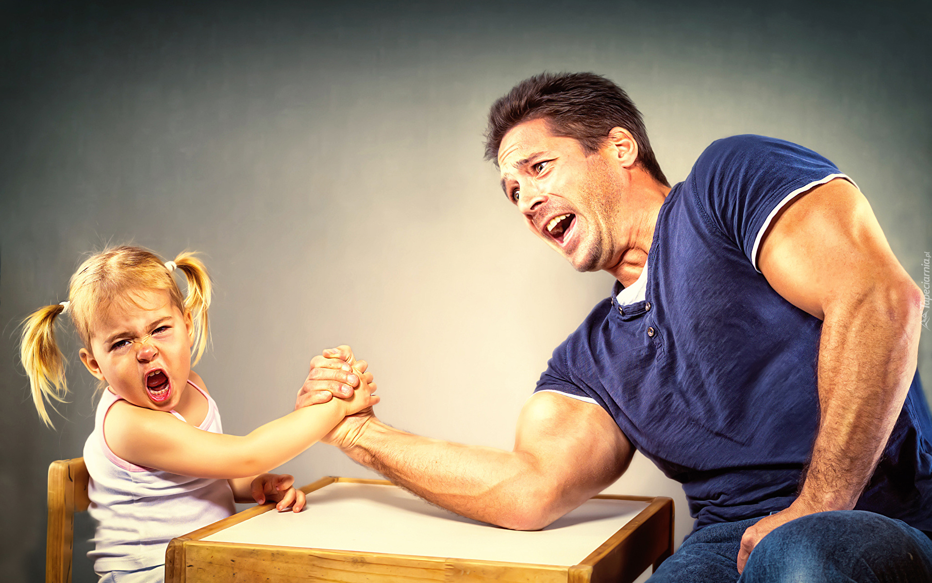 Edytor tapety: Mężczyzna siłujący się z dziewczynką