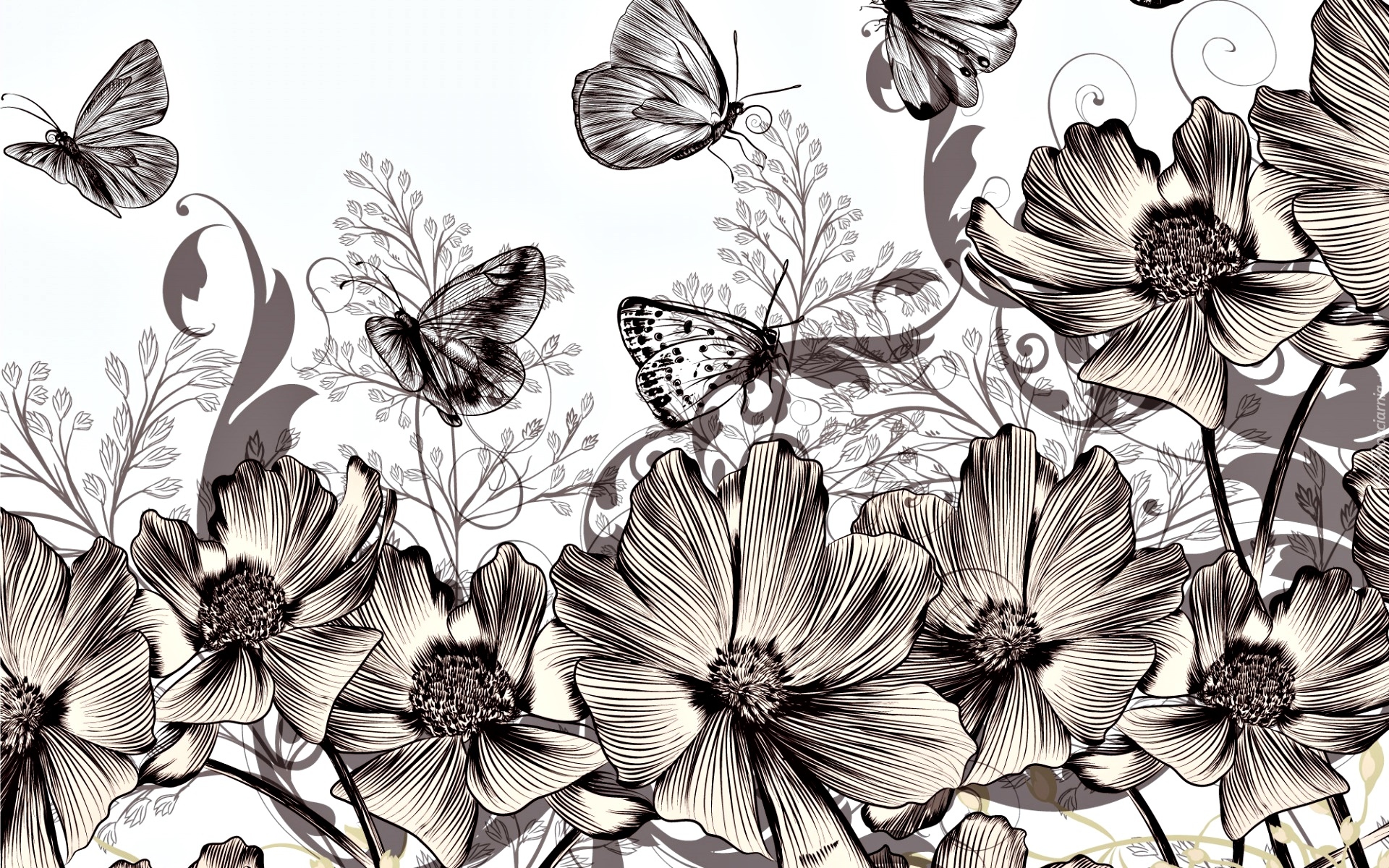 Edytor tapety: Kwiaty i motyle w odcieniu sepii