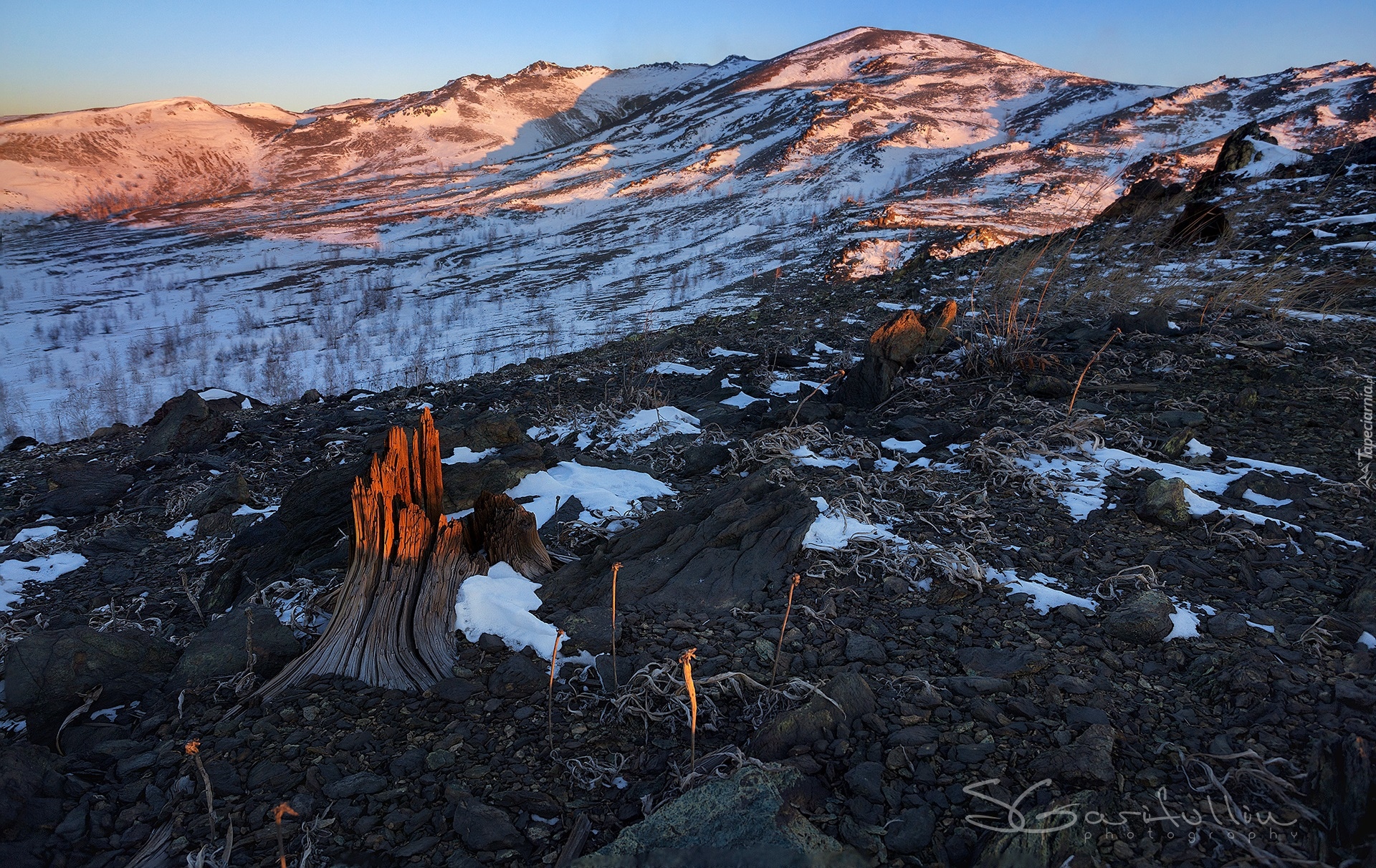 Edytor tapety: Śnieg na szczytach gór