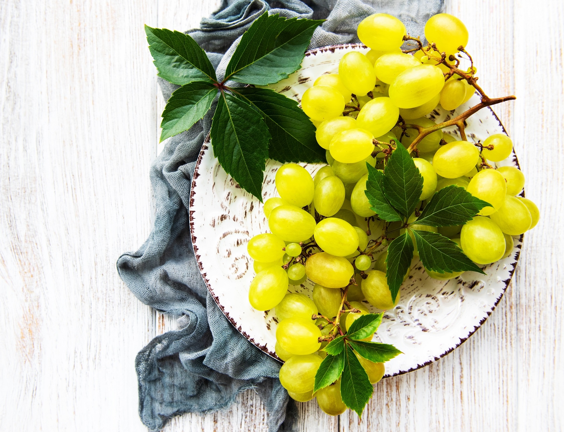 Edytor tapety: Winogrona i listki na talerzu
