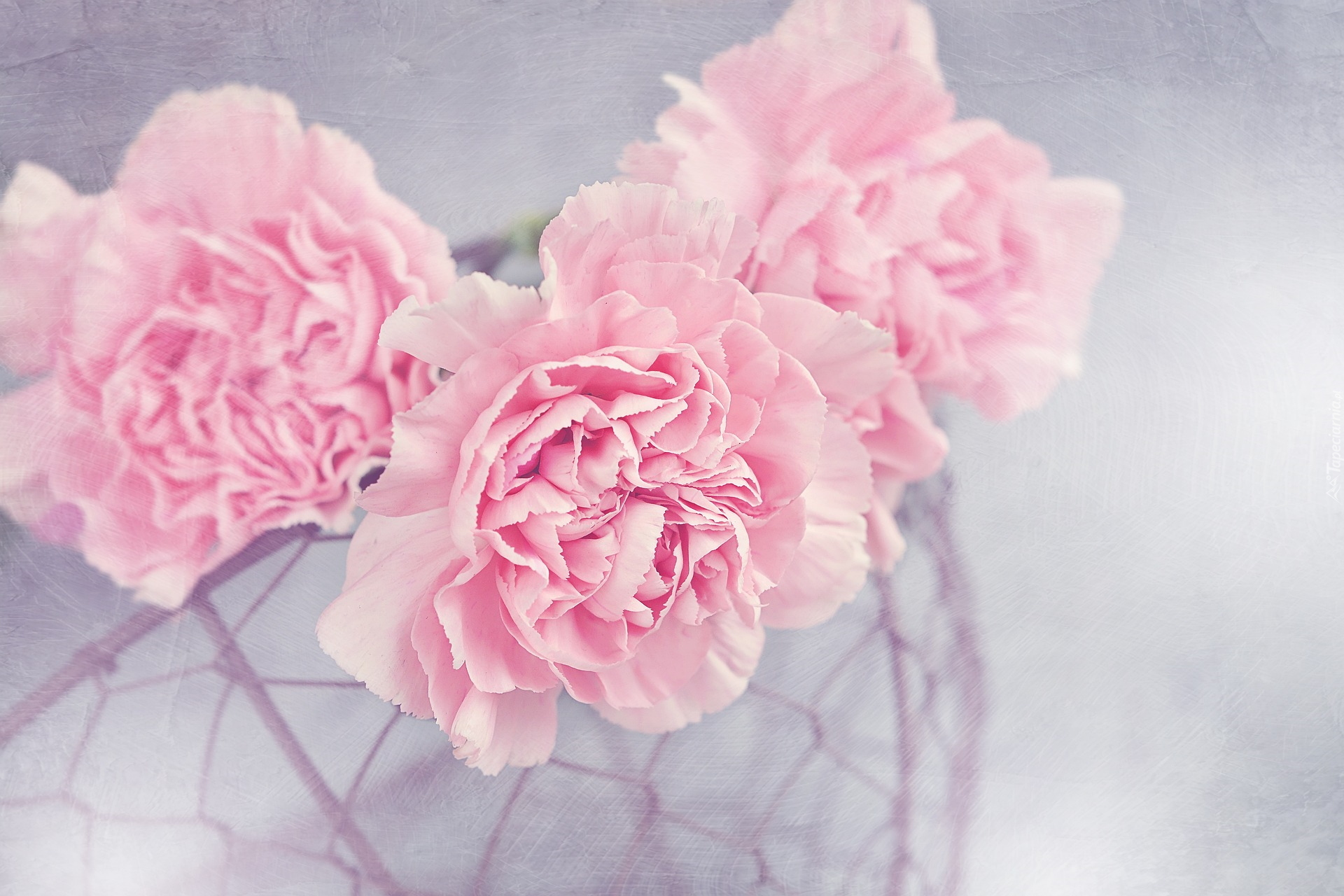 Edytor tapety: Trzy różowe goździki