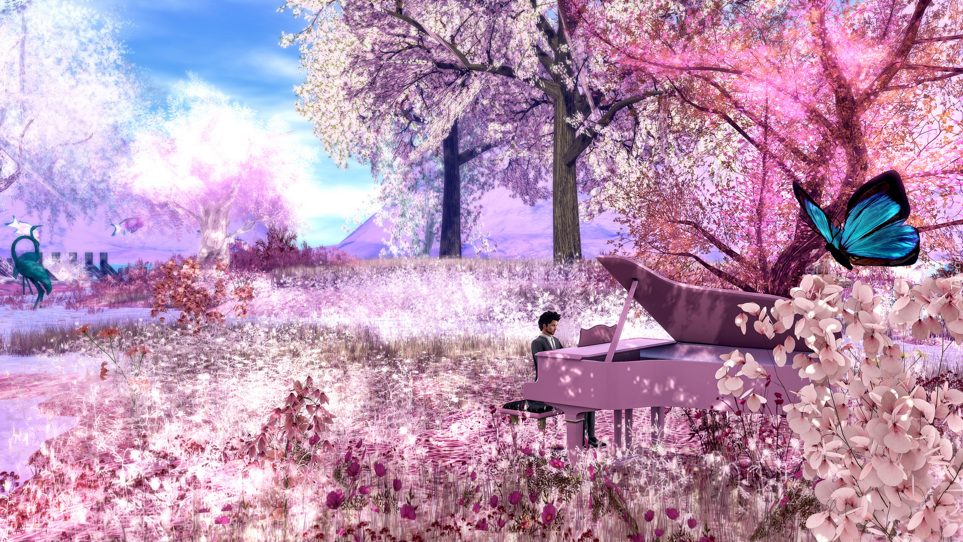 Edytor tapety: Mężczyzna przy fortepianie w wiosennym parku