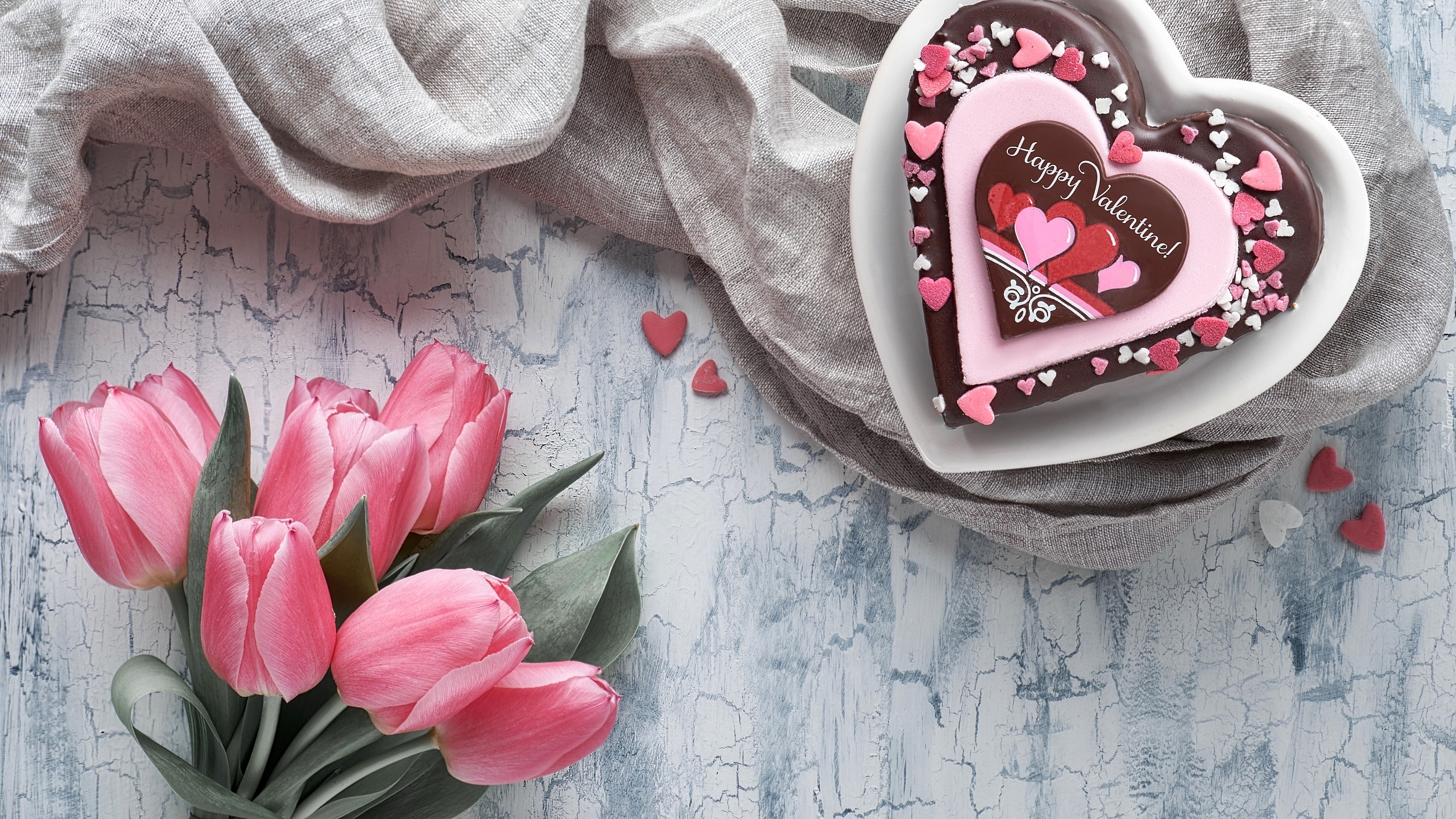 Edytor tapety: Czekoladowe serce i tulipany na walentynki