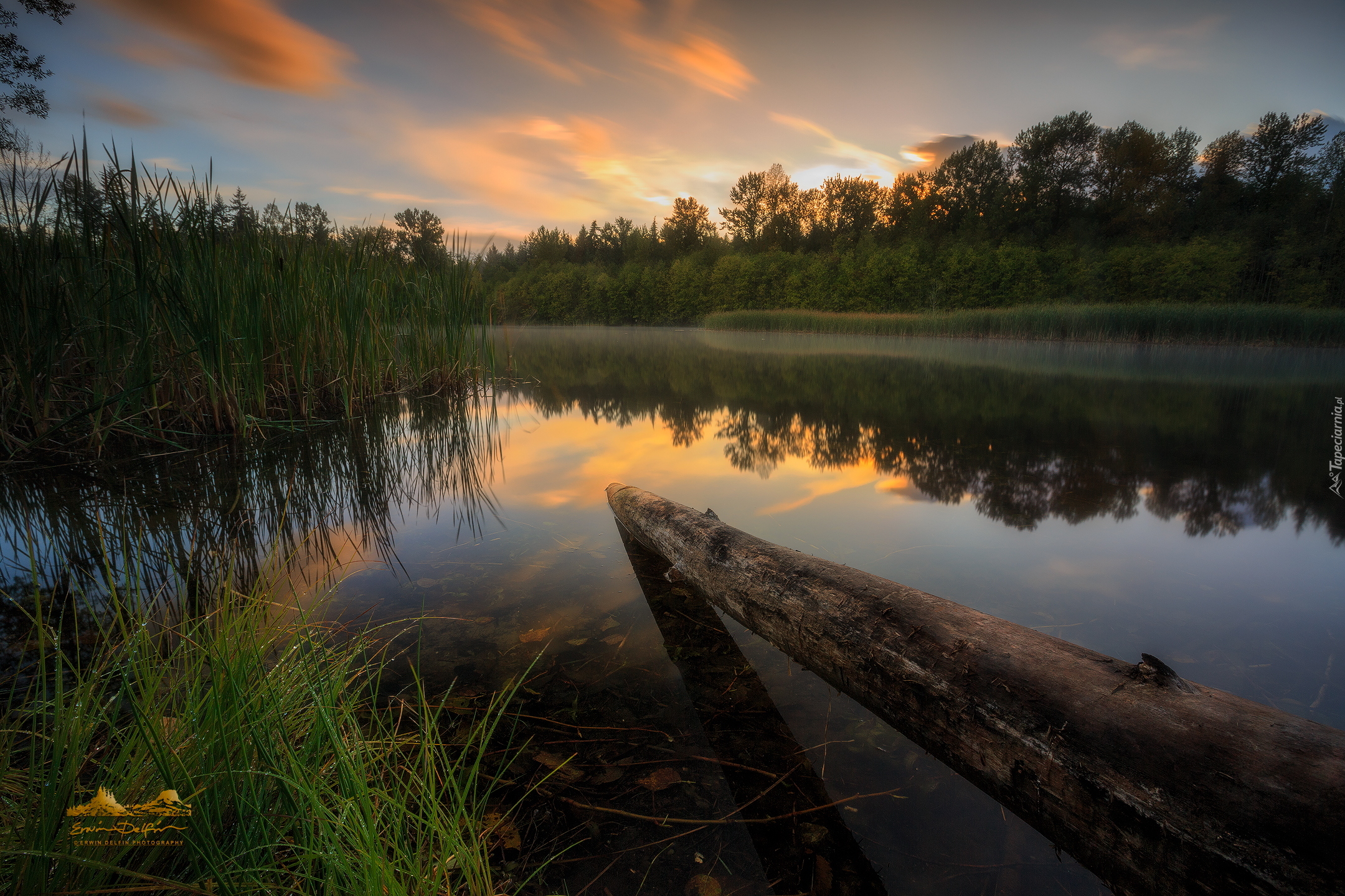 Edytor tapety: Zachód słońca nad jeziorem Green Timbers