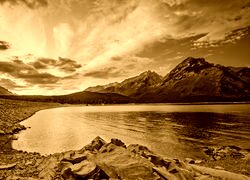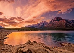 Edytor tapety: Zachód słońca nad jeziorem Minnewanka w Kanadzie