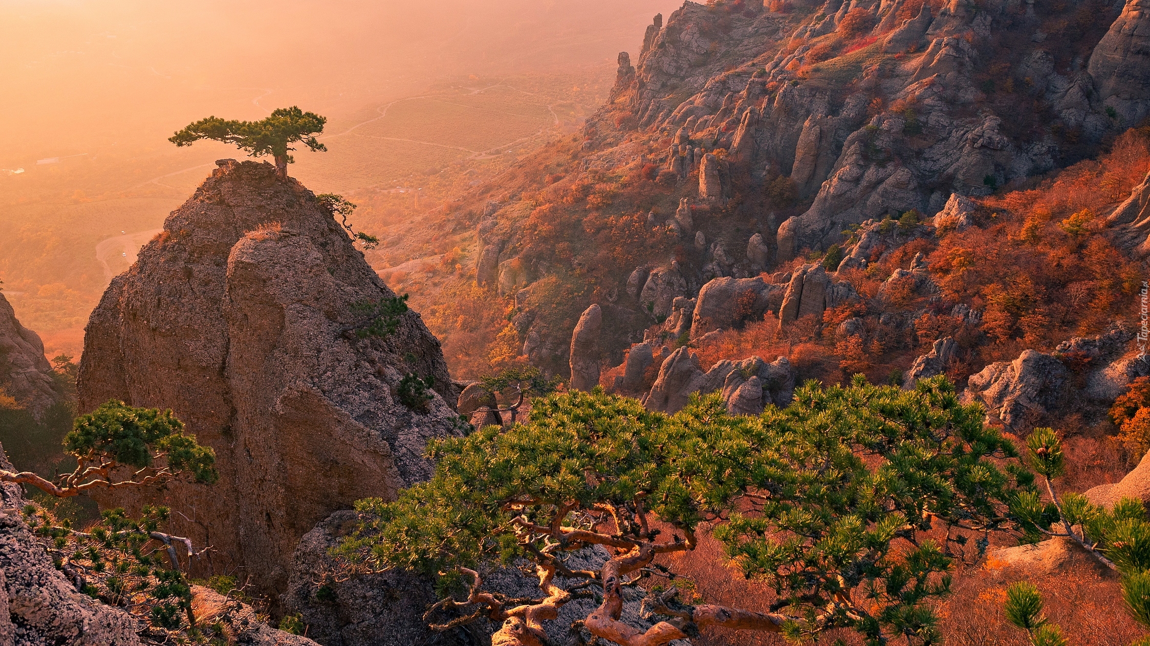 Edytor tapety: Sosna na szczycie skały