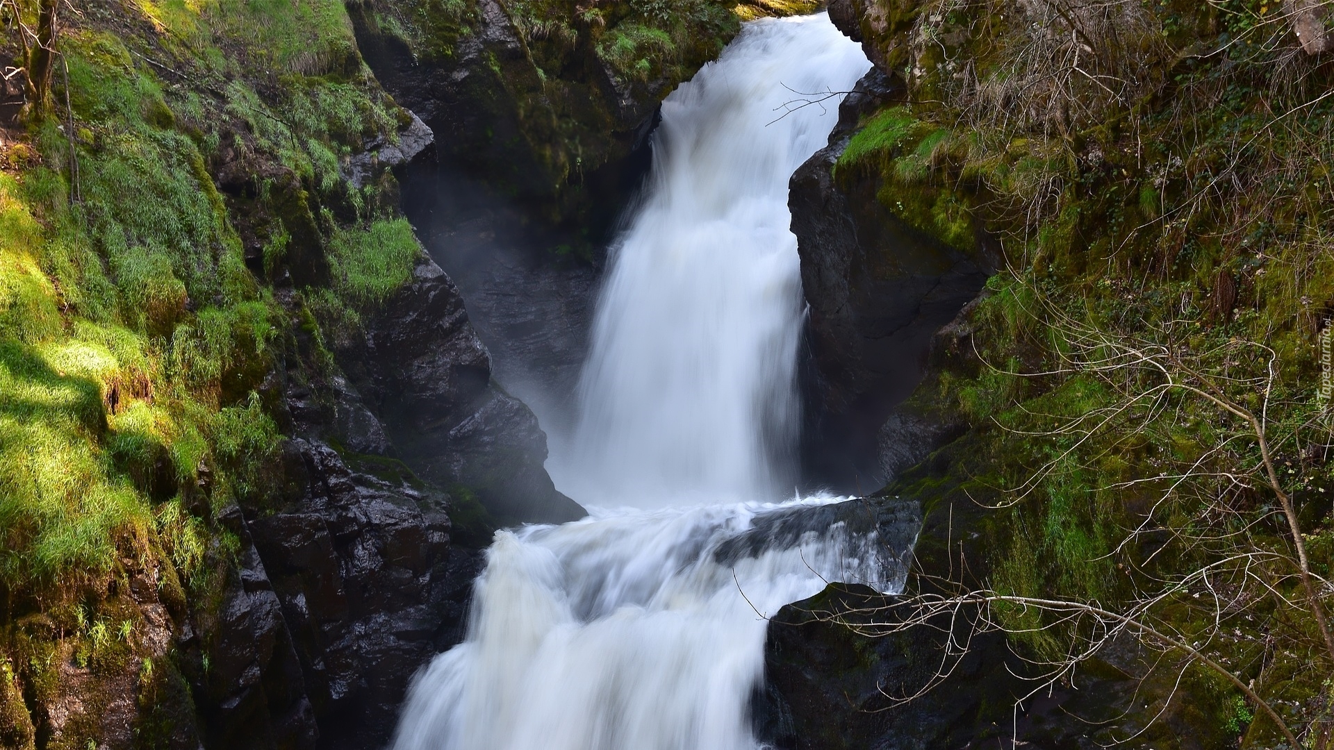 Edytor tapety: Wodospad pośród skał