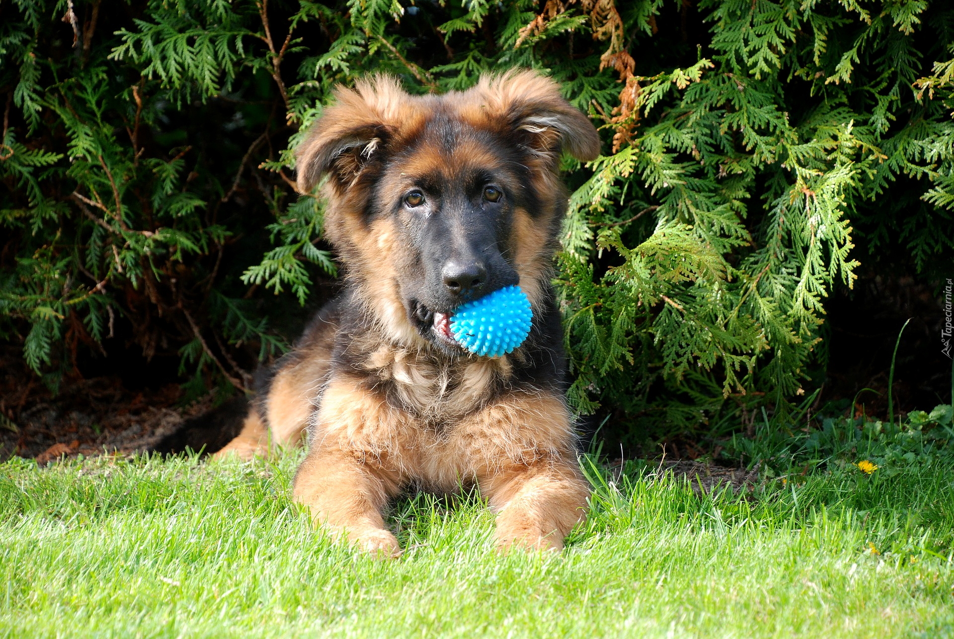 Edytor tapety: Szczeniak owczarka niemieckiego z piłeczką