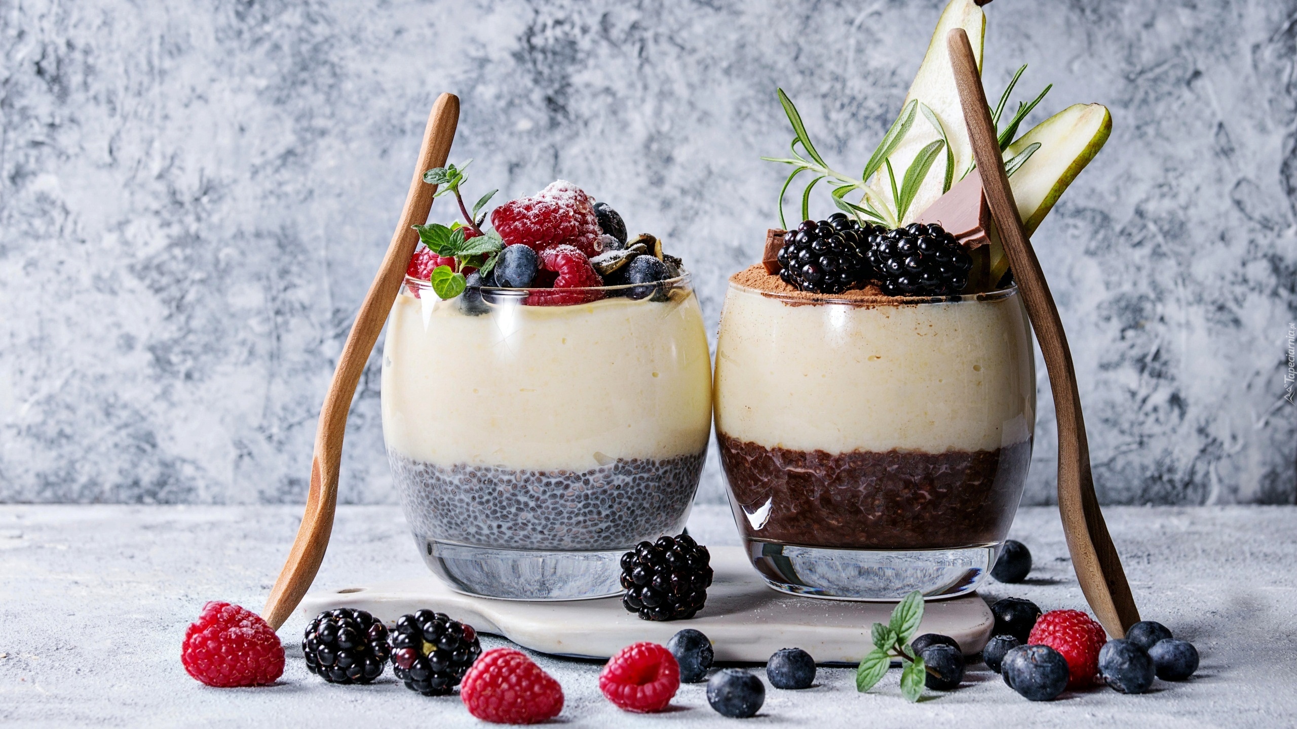 Edytor tapety: Dwa desery z jeżynami i malinami