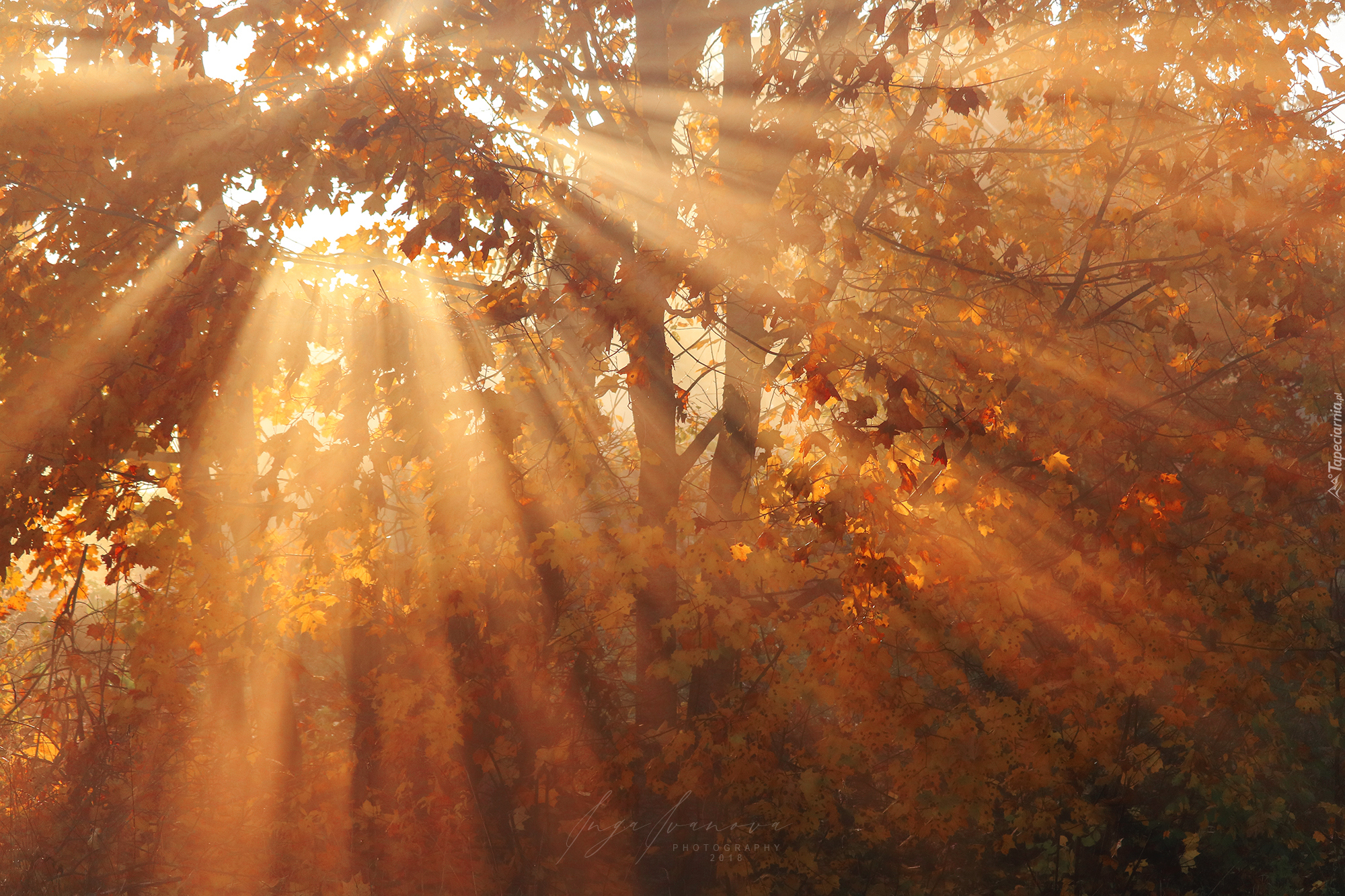 Edytor tapety: Przebijające światło słoneczne przez gałęzie drzew