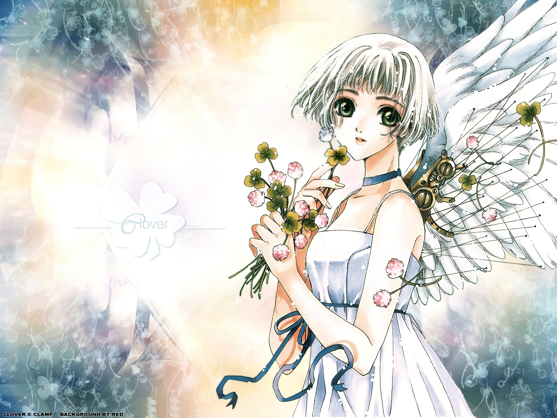 Edytor tapety: skrzydła, Clover, dziewczyna, kwiatki