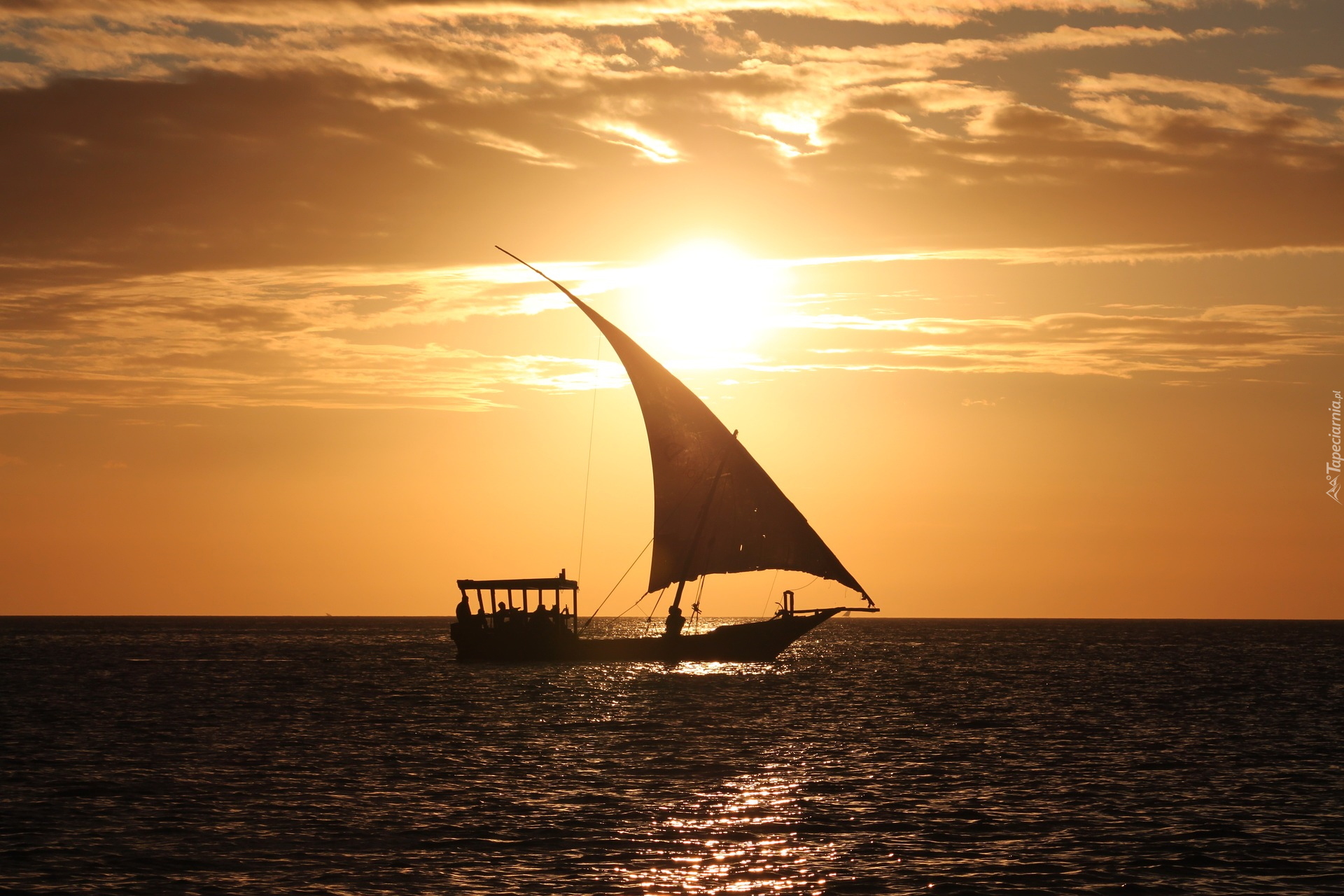 Edytor tapety: Żaglówka na morzu o zachodzie słońca