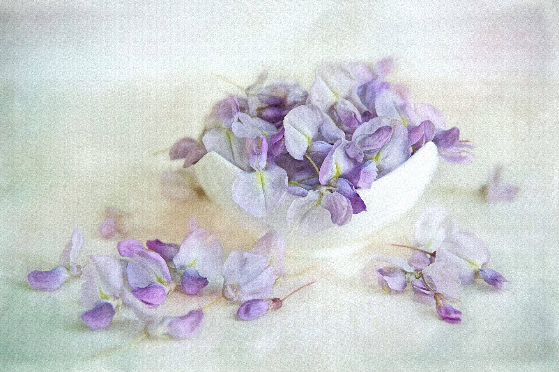 Edytor tapety: Kwiaty glicynii w miseczce