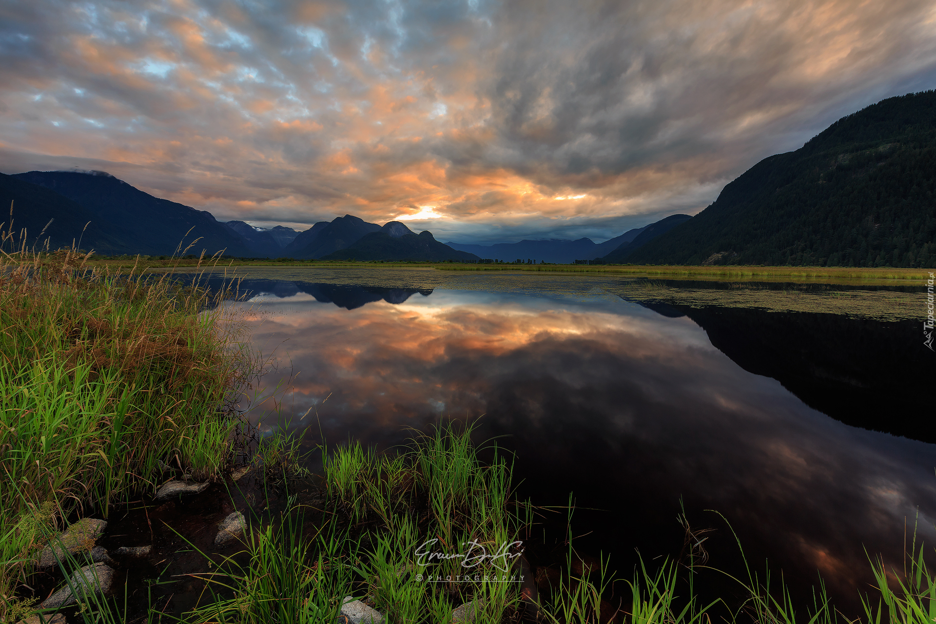 Edytor tapety: Chmury nad jeziorem Pitt Lake w Kanadzie