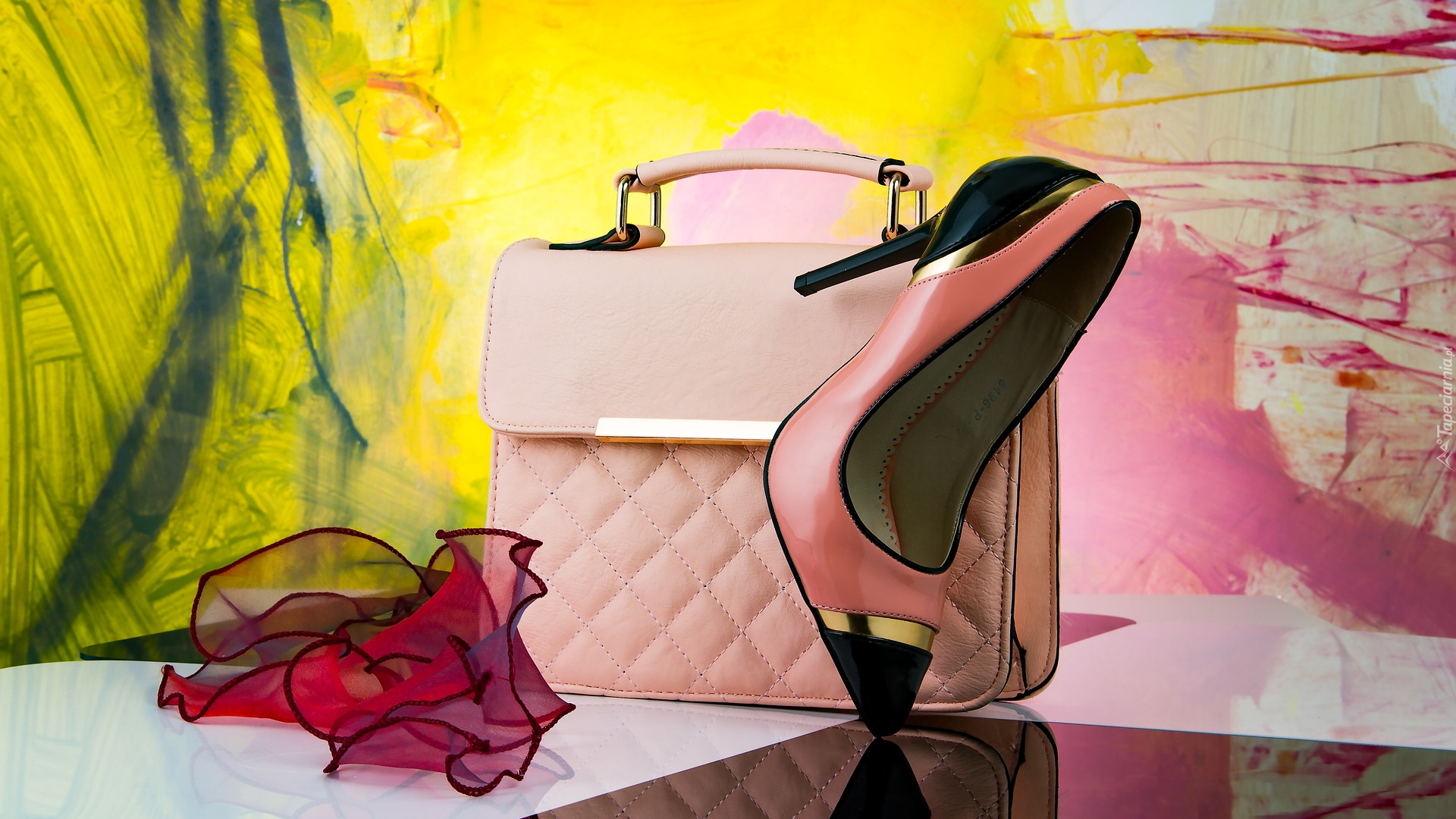 Edytor tapety: Różowa torebka i szpilki