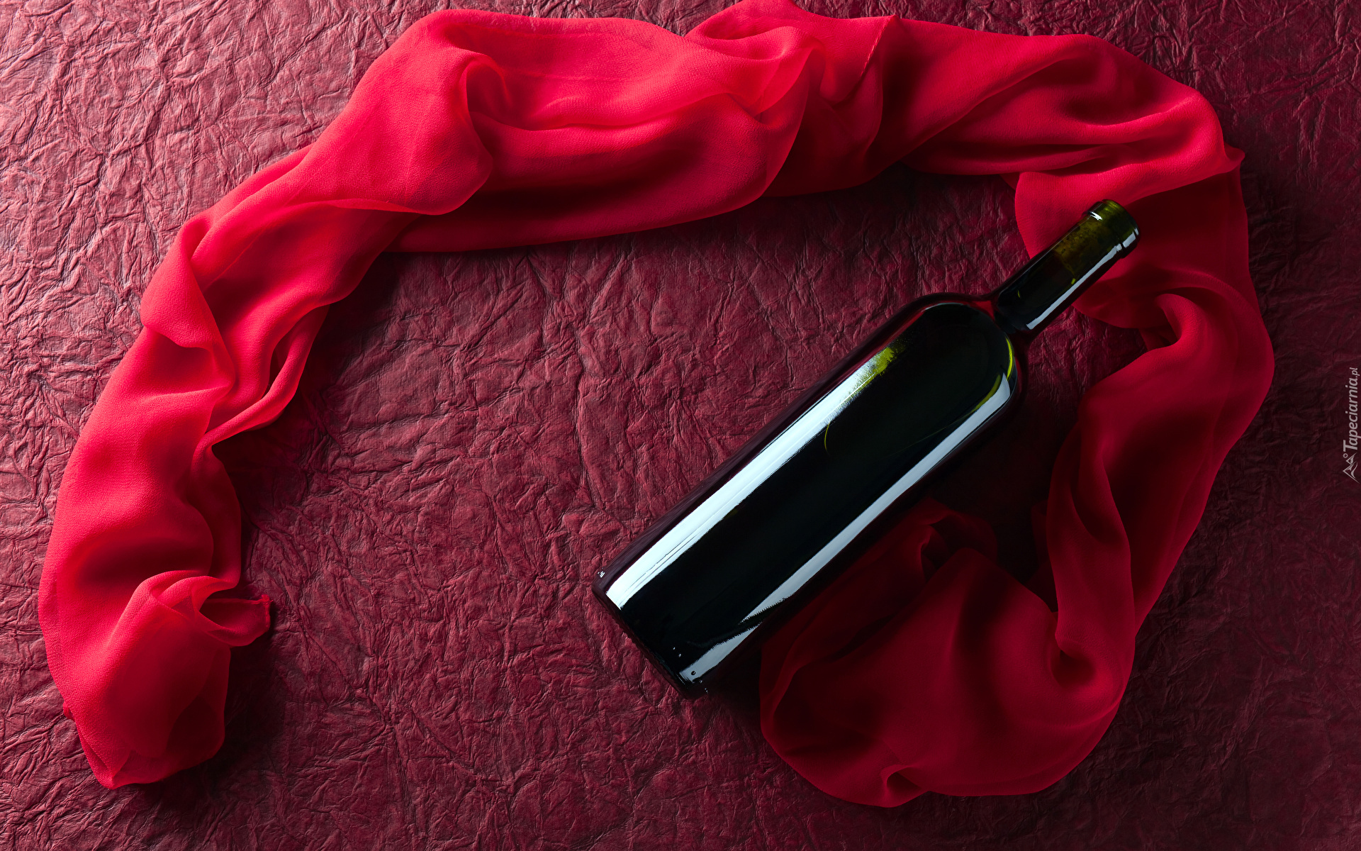 Edytor tapety: Butelka wina obok czerwonego szalika