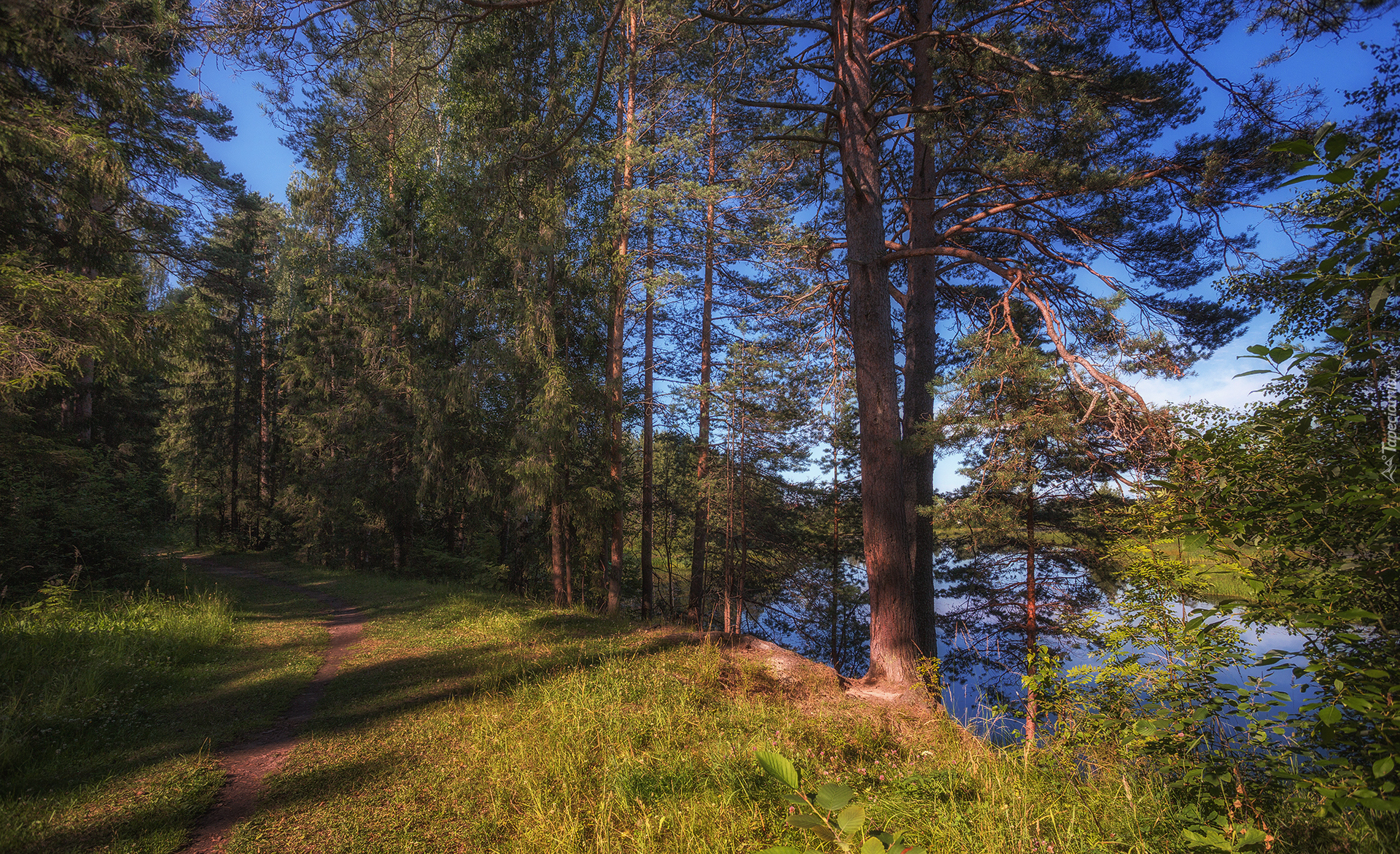 Edytor tapety: Droga przez las nad rzeką