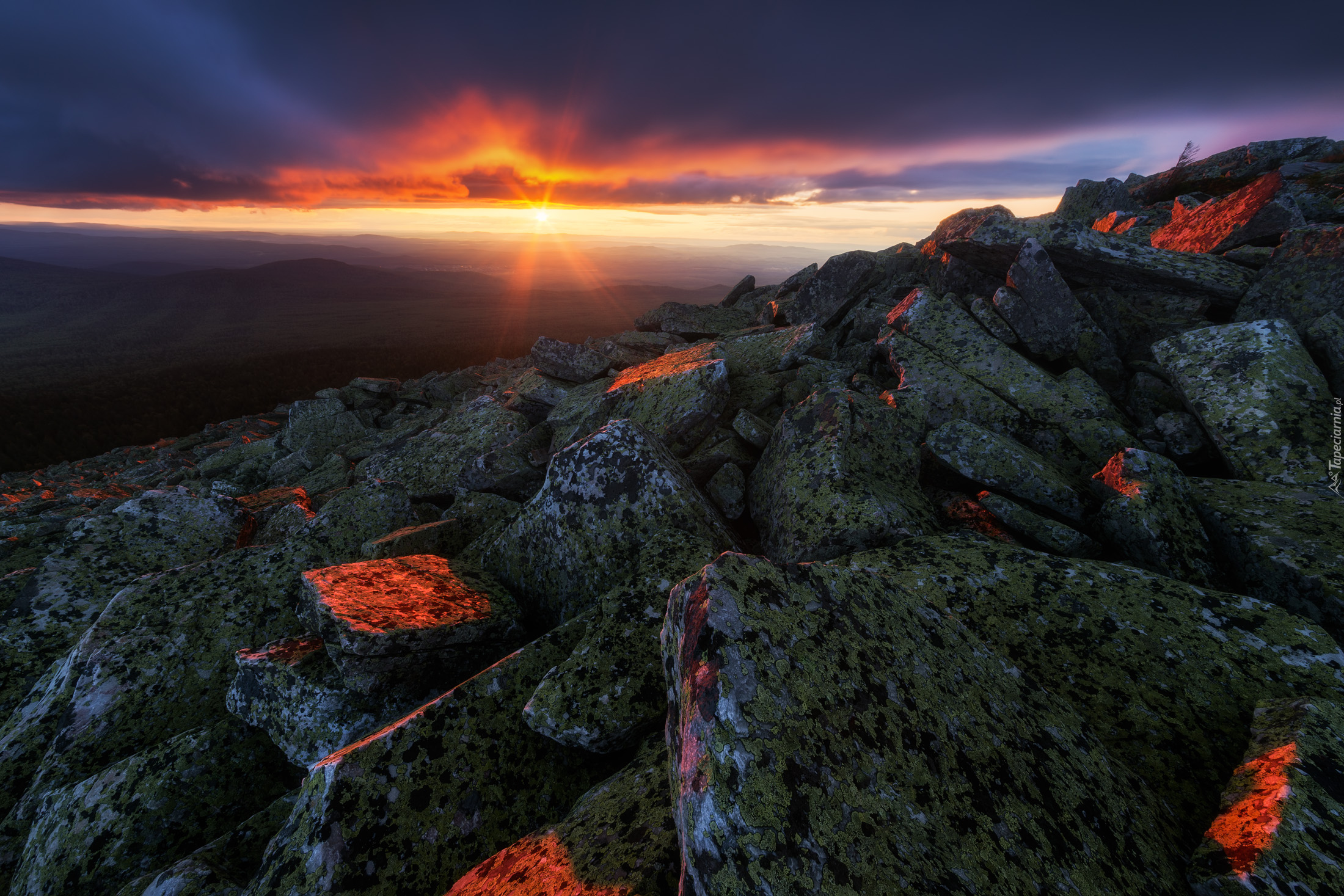 Edytor tapety: Omszałe kamienie w promieniach zachodzącego słońca