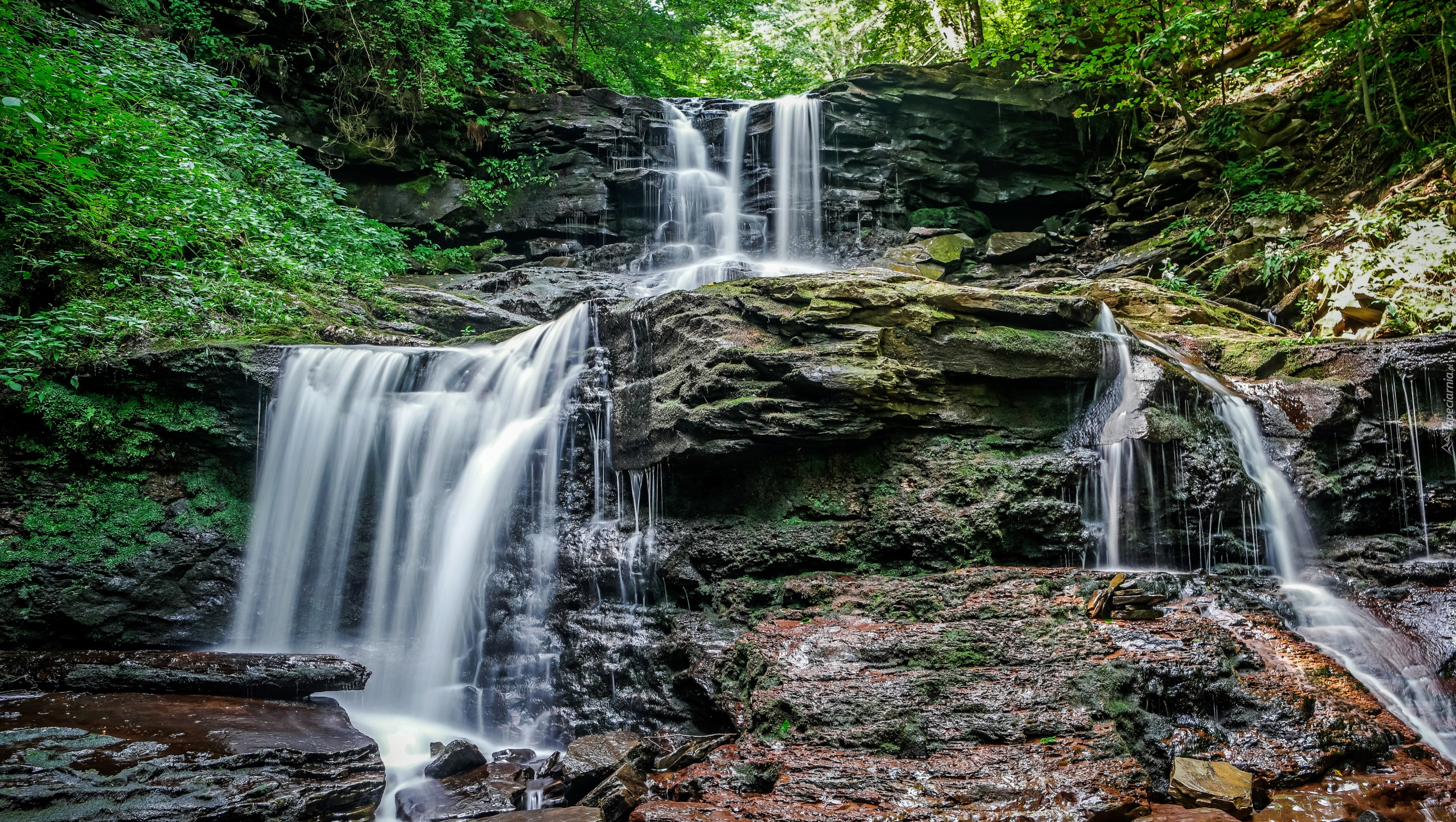 Edytor tapety: Leśny wodospad na skale