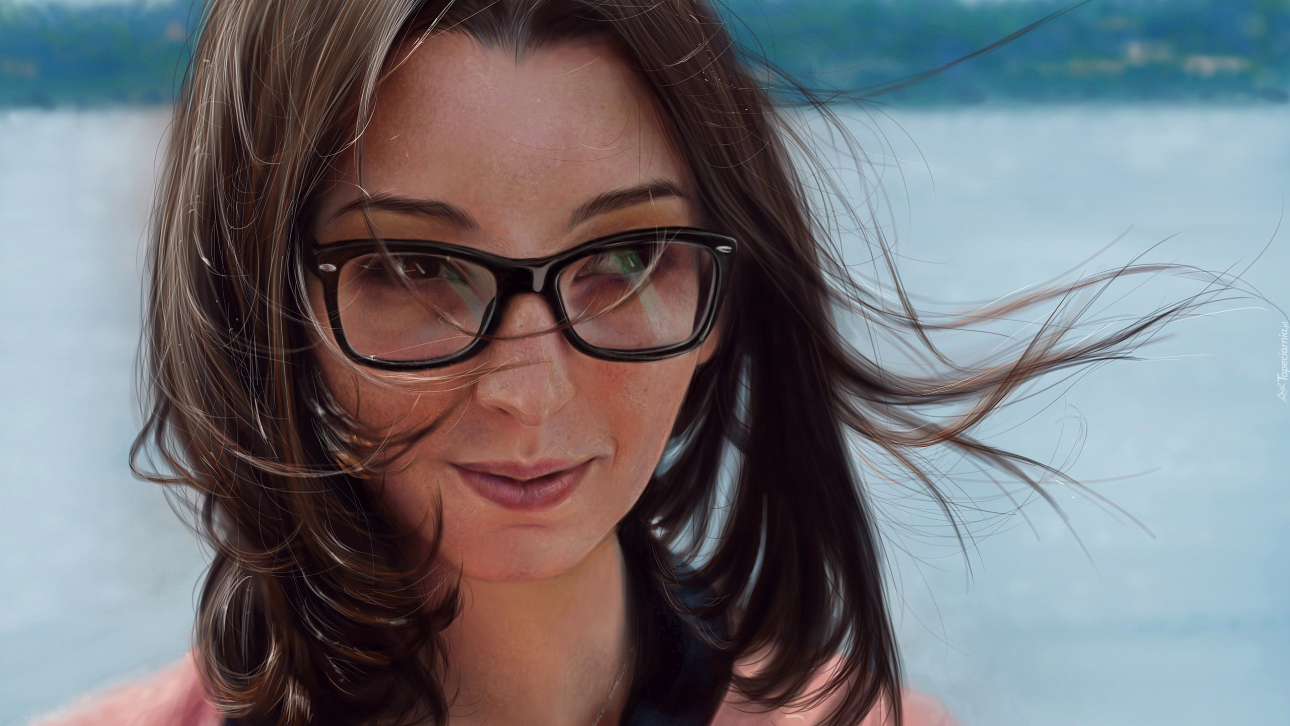 Edytor tapety: Szatynka w okularach z rozwianym włosem