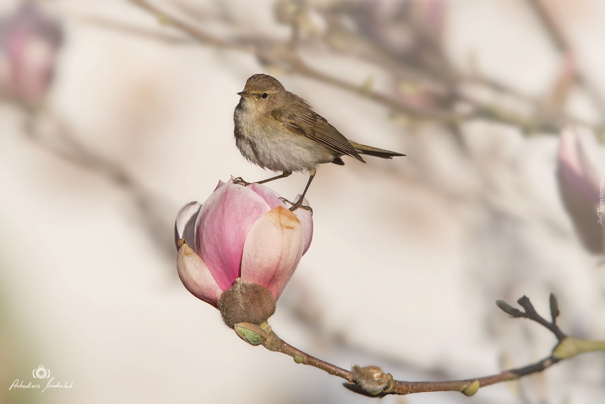 Edytor tapety: Ptak na pąku magnolii