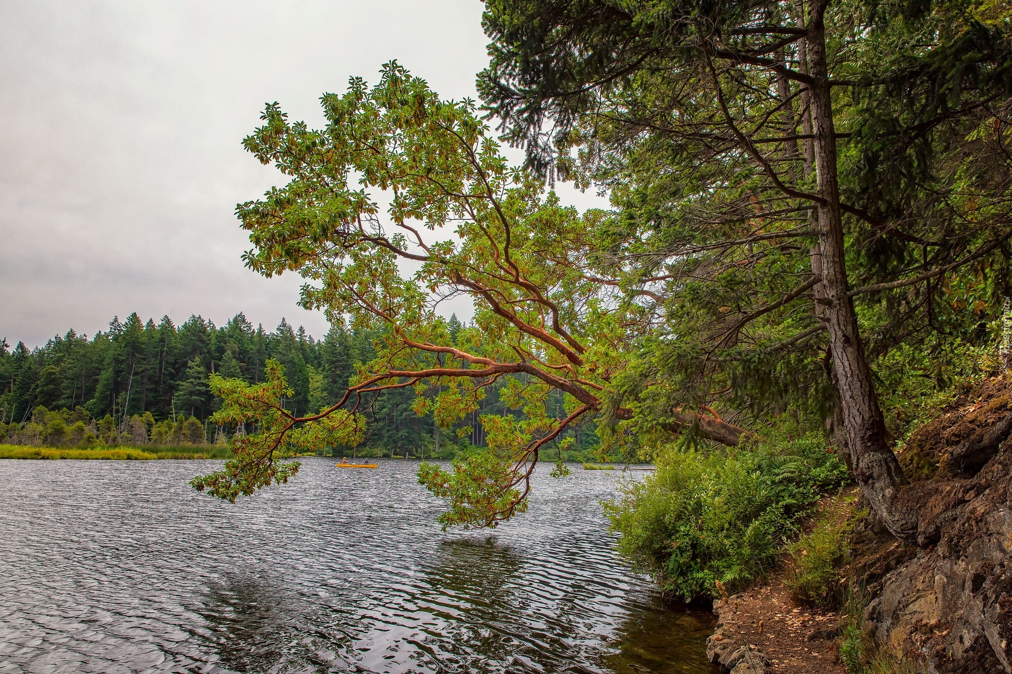 Edytor tapety: Pochylone drzewo nad jeziorem