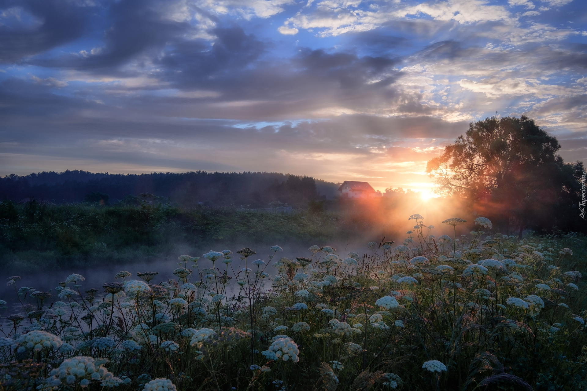 Edytor tapety: Rzeka Istra we mgle o wschodzie słońca