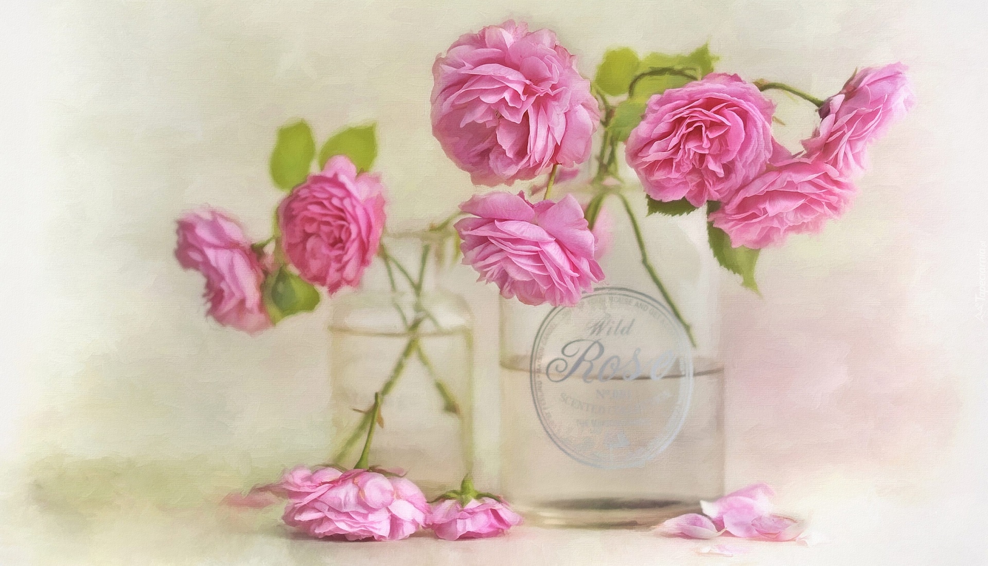 Edytor tapety: Róże w szklanych naczyniach