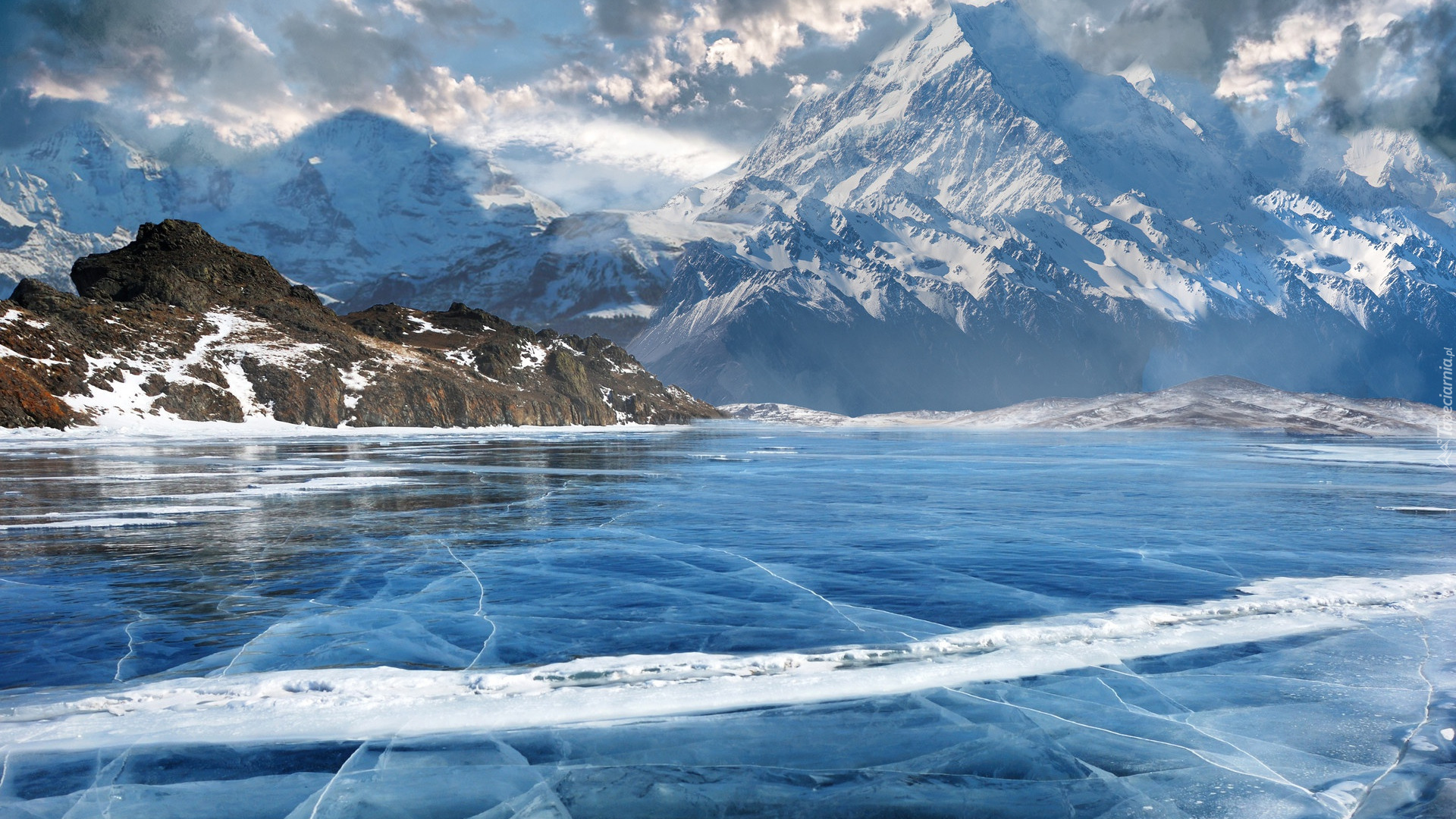 Edytor tapety: Zamarznięte górskie jezioro