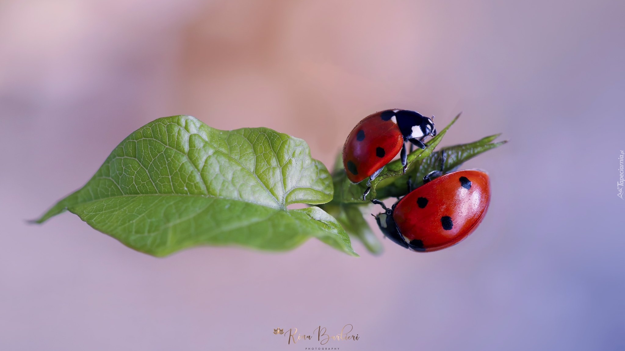 Edytor tapety: Biedronki na liściu