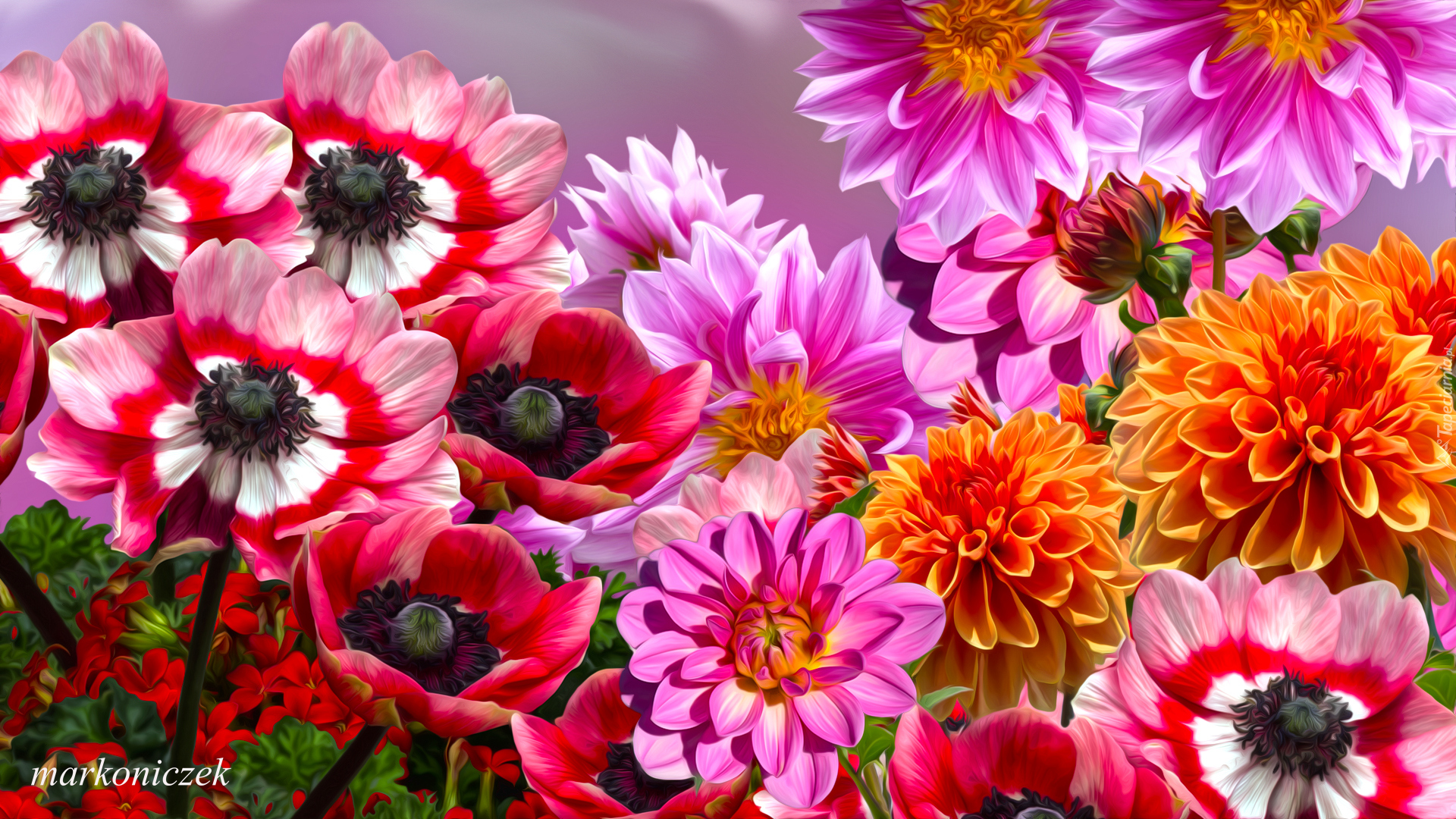 Edytor tapety: Zawilce i dalie w grafice