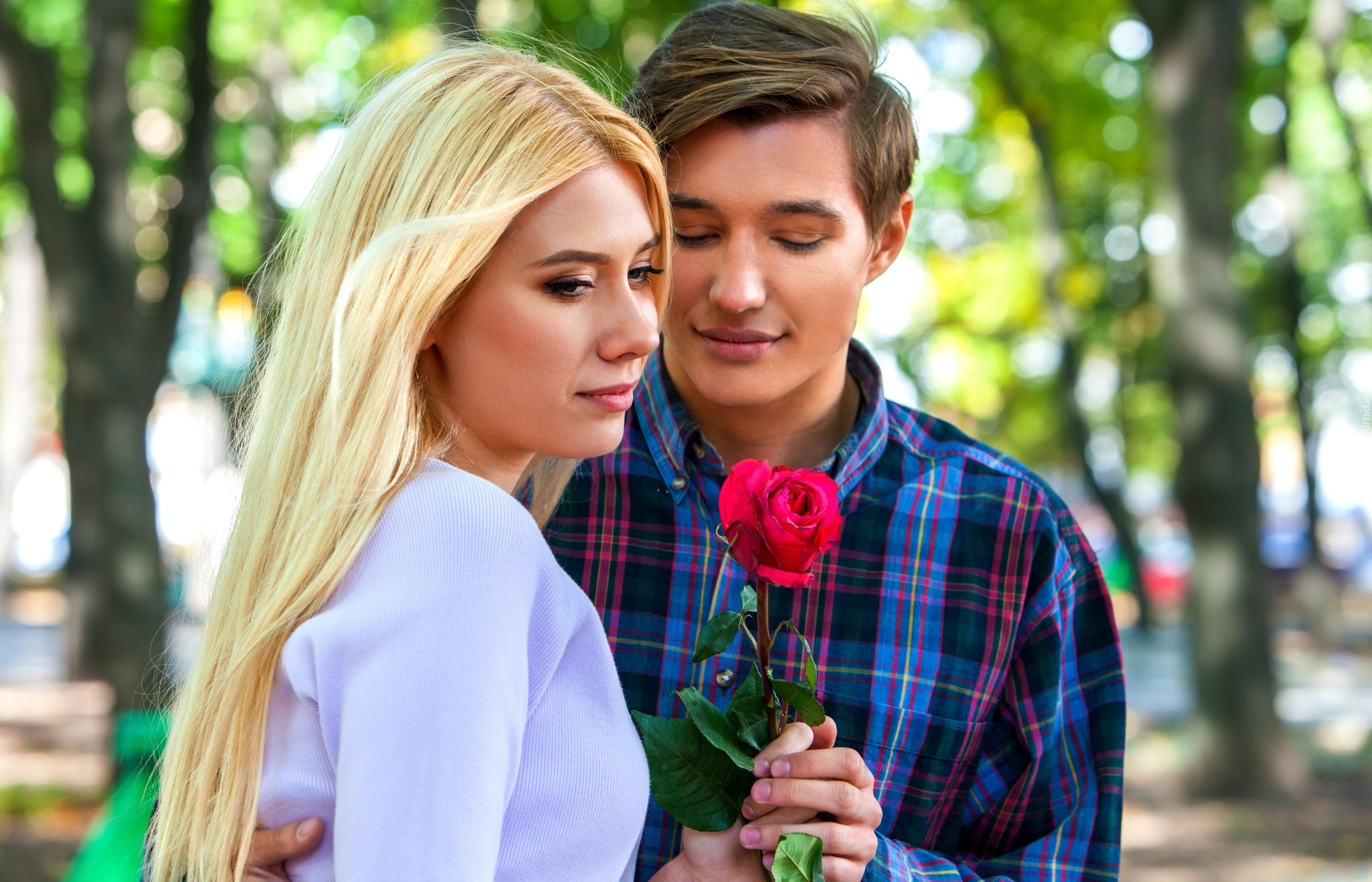 Edytor tapety: Kobieta i mężczyzna z czerwoną różą
