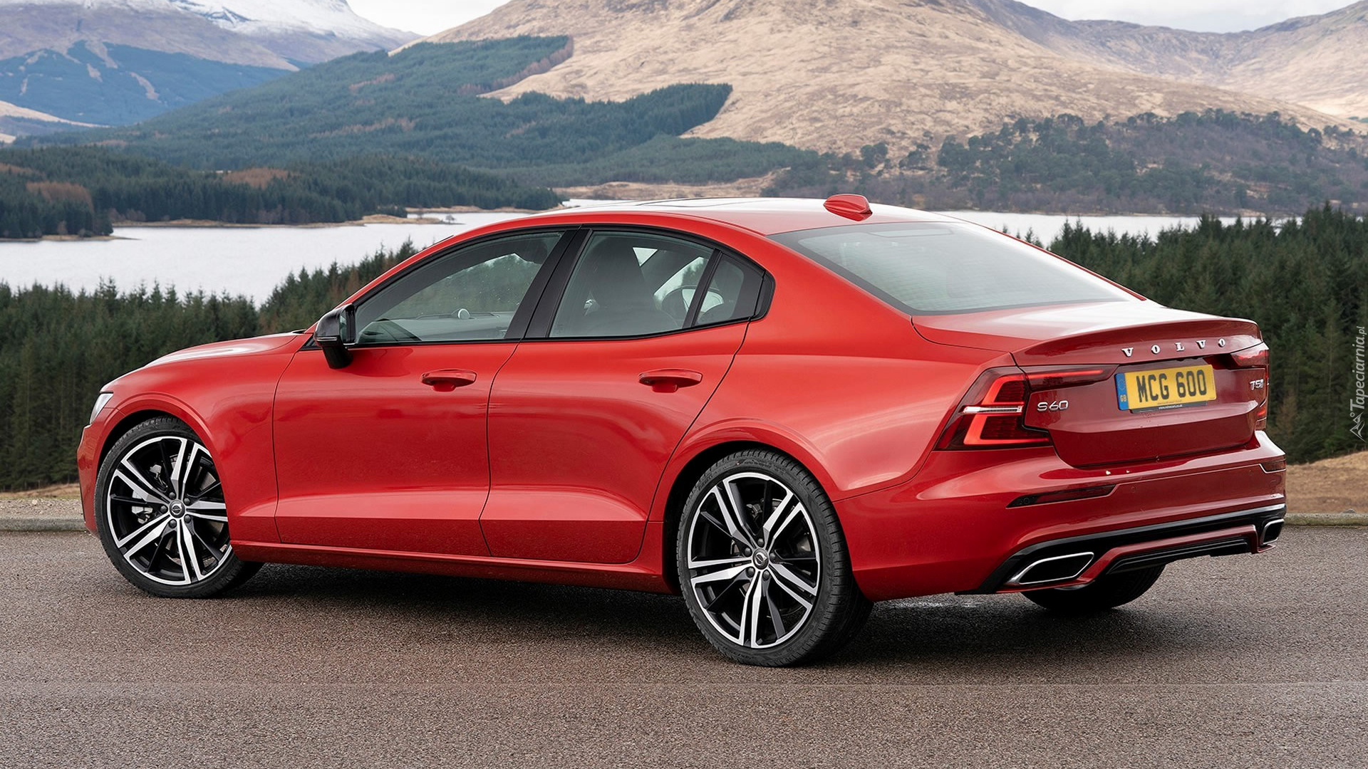 Edytor tapety: Czerwone Volvo S60 nad jeziorem