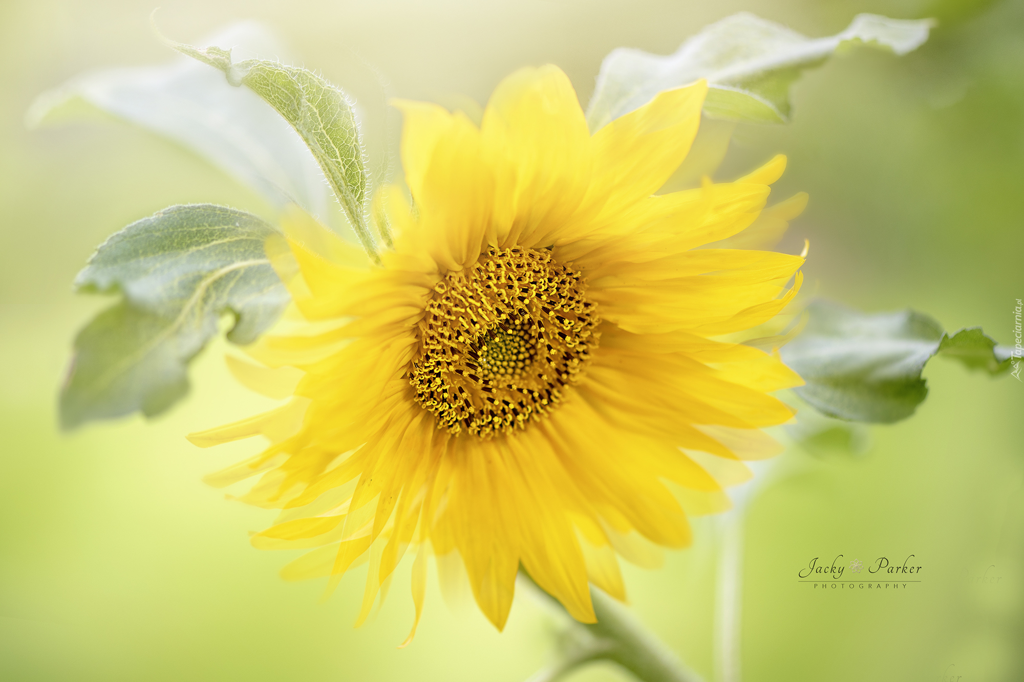Edytor tapety: Kwiat słonecznika z liśćmi