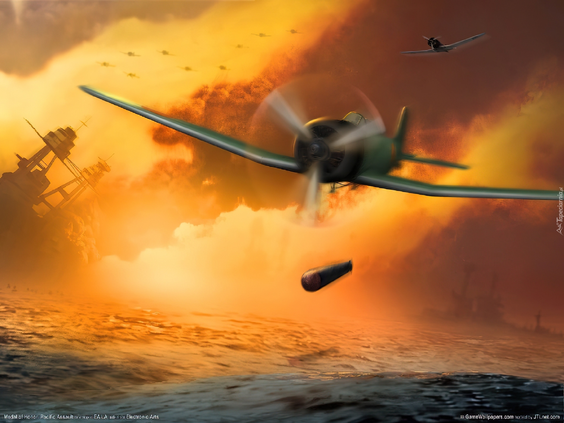 Edytor tapety: Nvidia, samolot, statek, bomba, nalot