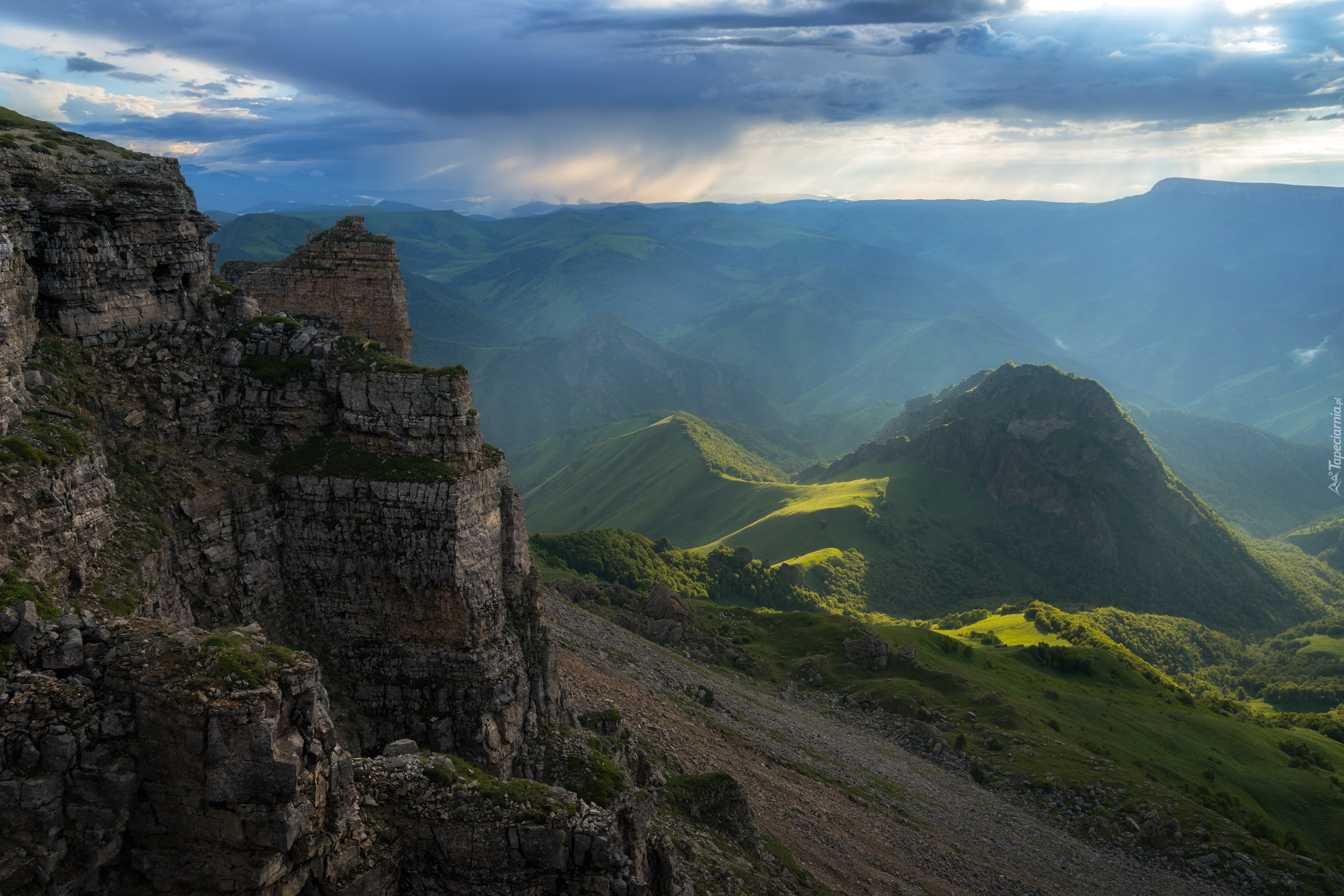 Edytor tapety: Widok ze skały na zalesione góry