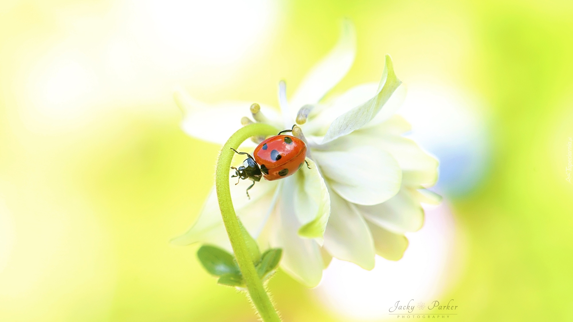 Edytor tapety: Biedronka na białym kwiatku
