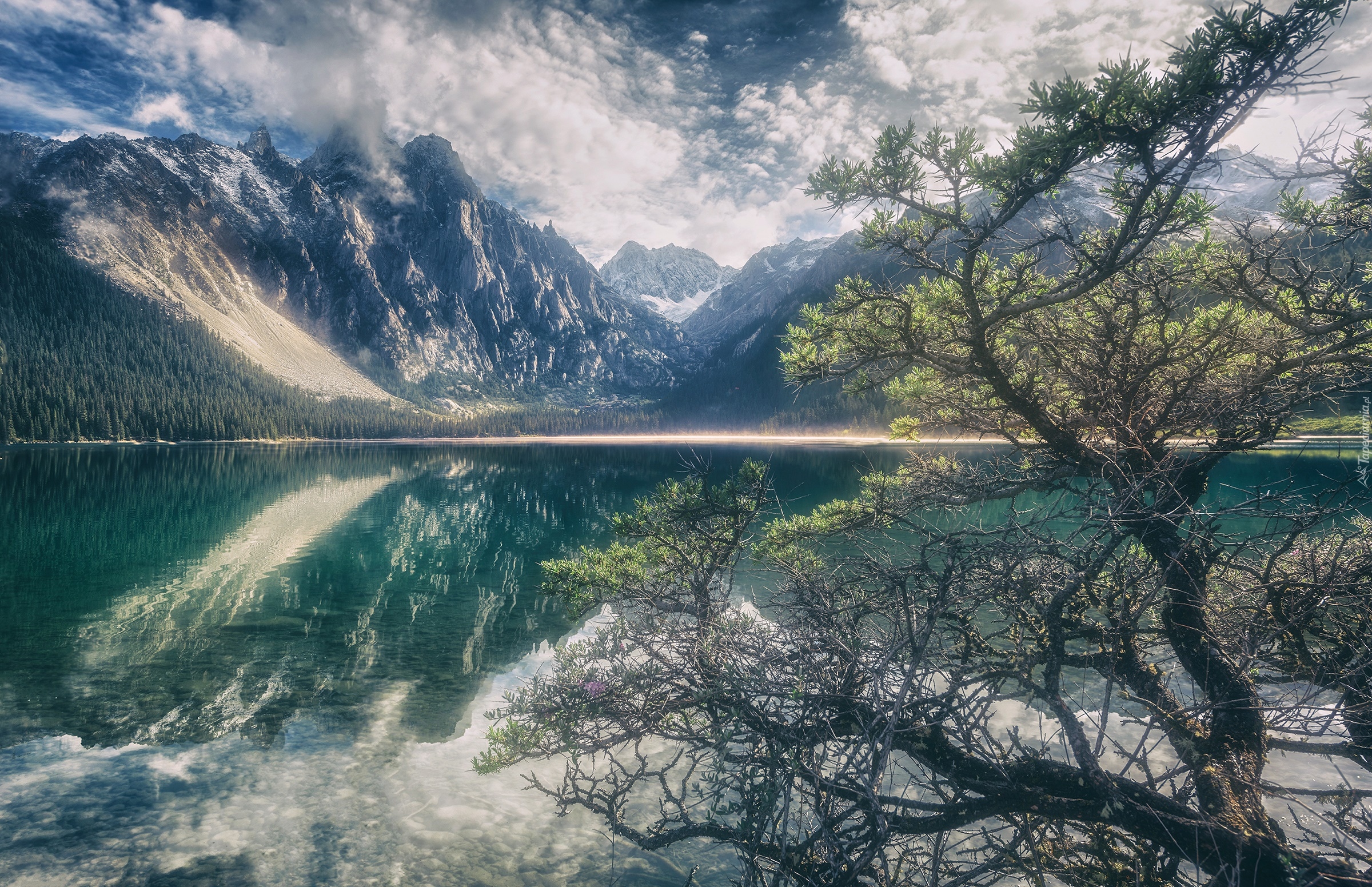 Edytor tapety: Poranek nad jeziorem w górach