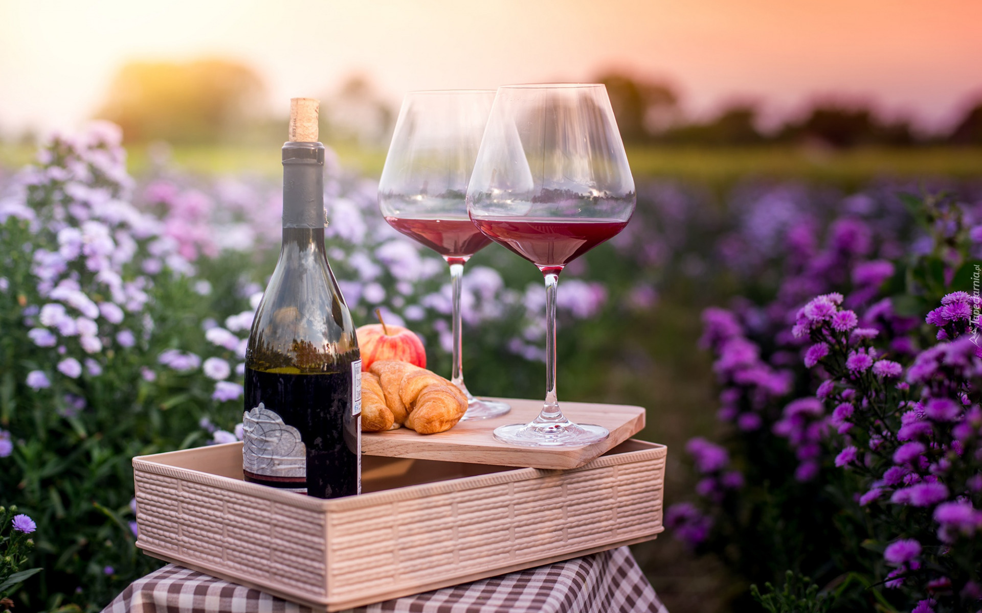 Edytor tapety: Kieliszki i butelka z winem na tacy
