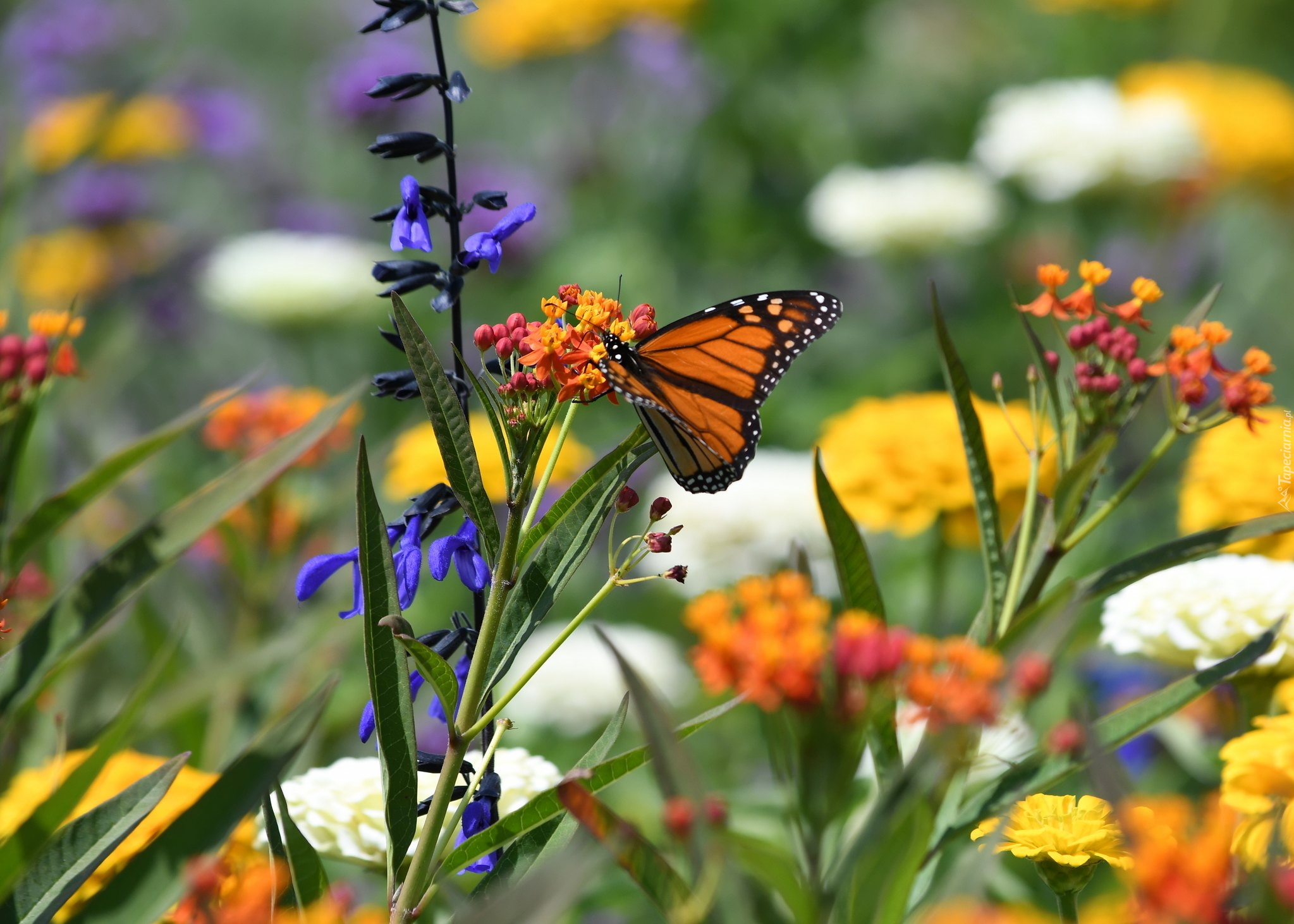 Edytor tapety: Monarcha na kolorowych kwiatach