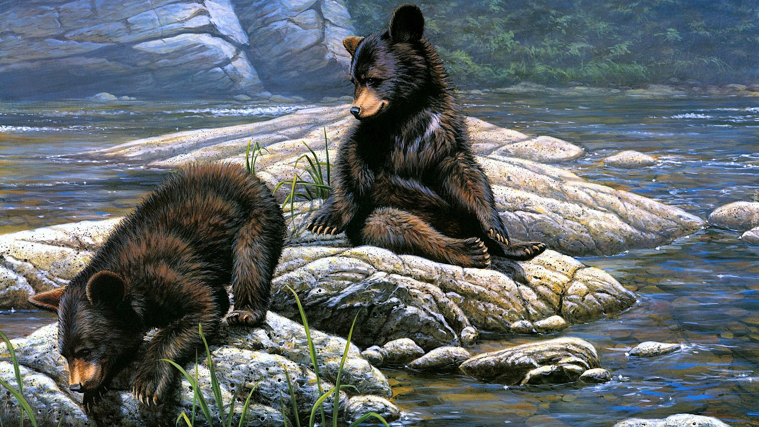 Edytor tapety: Dwa niedźwiadki na skałach