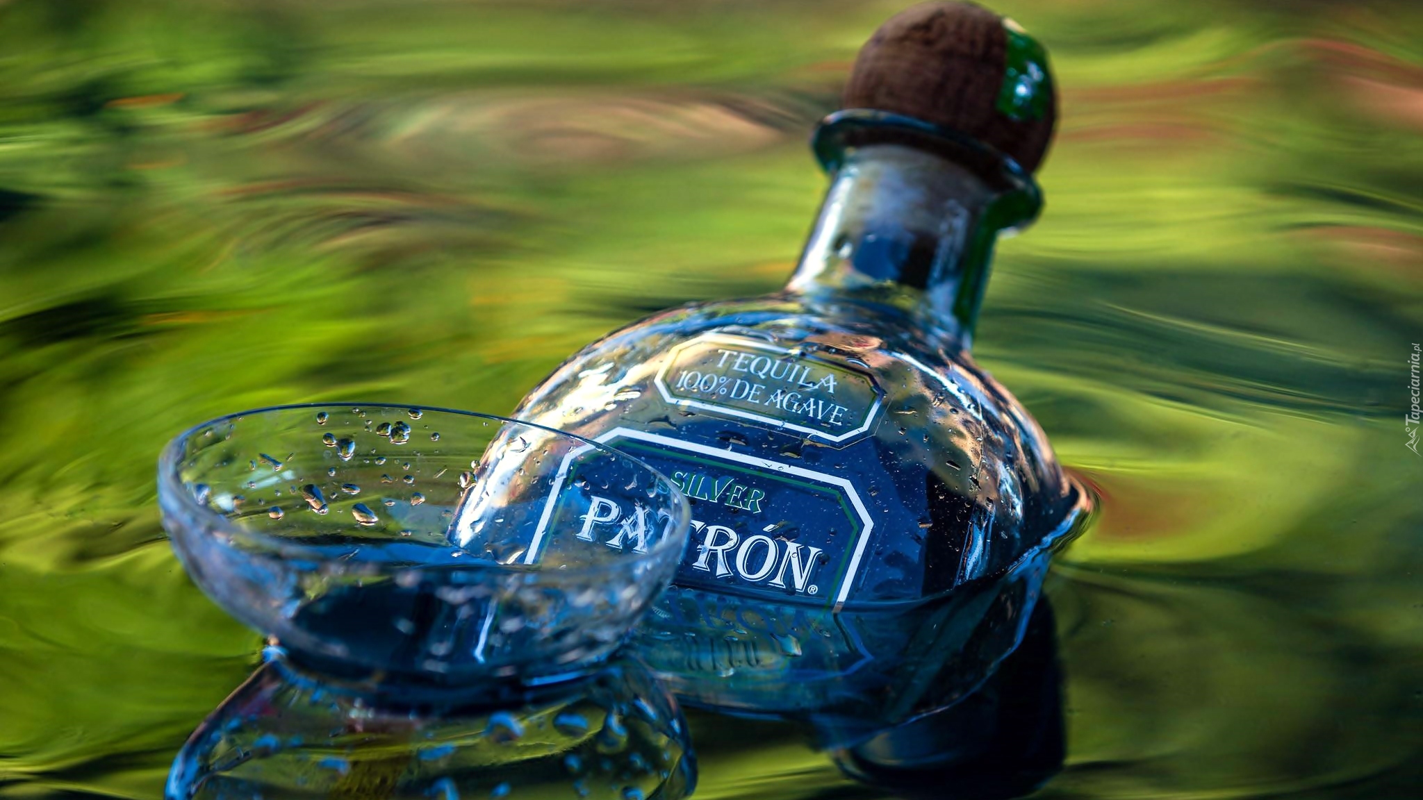 Edytor tapety: Butelka tequili i kieliszek w wodzie