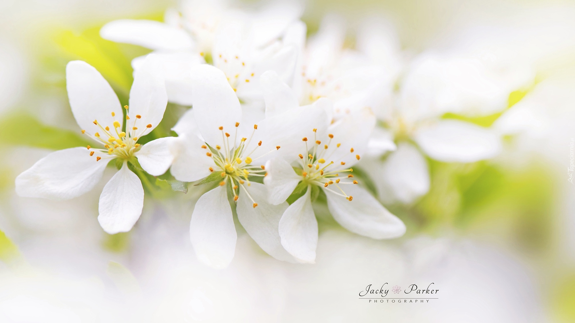 Edytor tapety: Białe kwiaty drzewa owocowego w makro