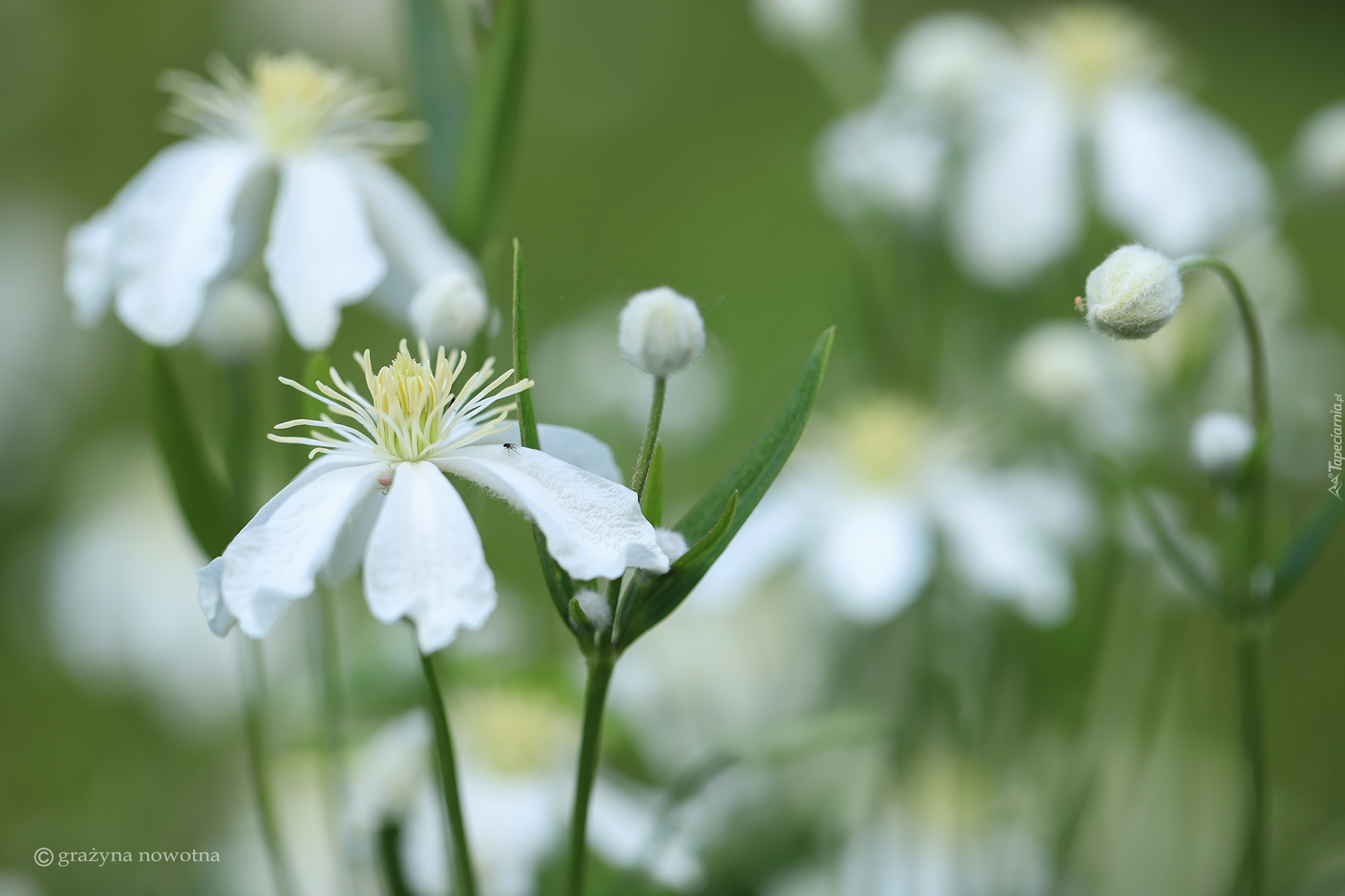 Edytor tapety: Białe powojniki pnące