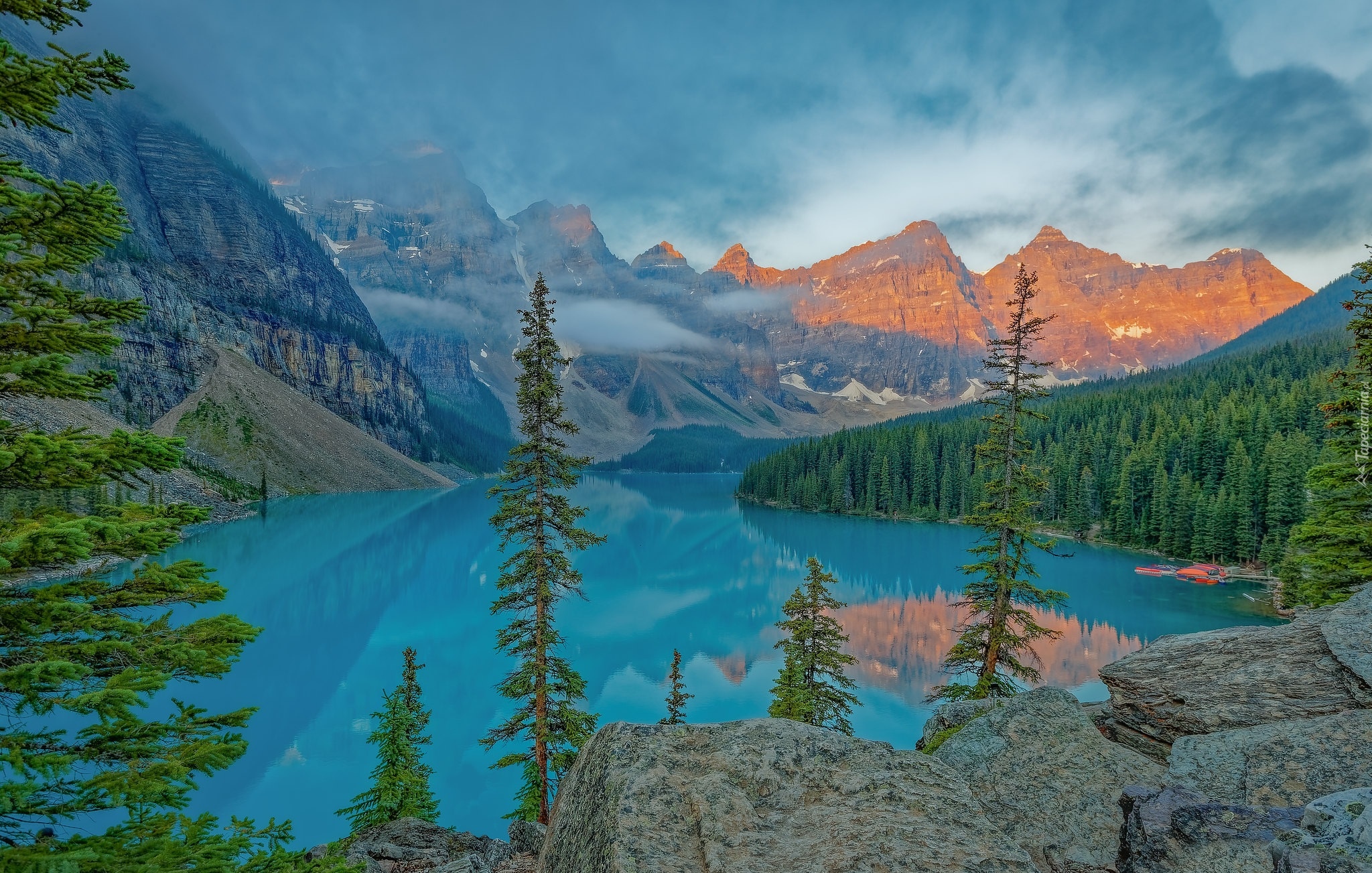 Edytor tapety: Niebieska woda w jeziorze Moraine