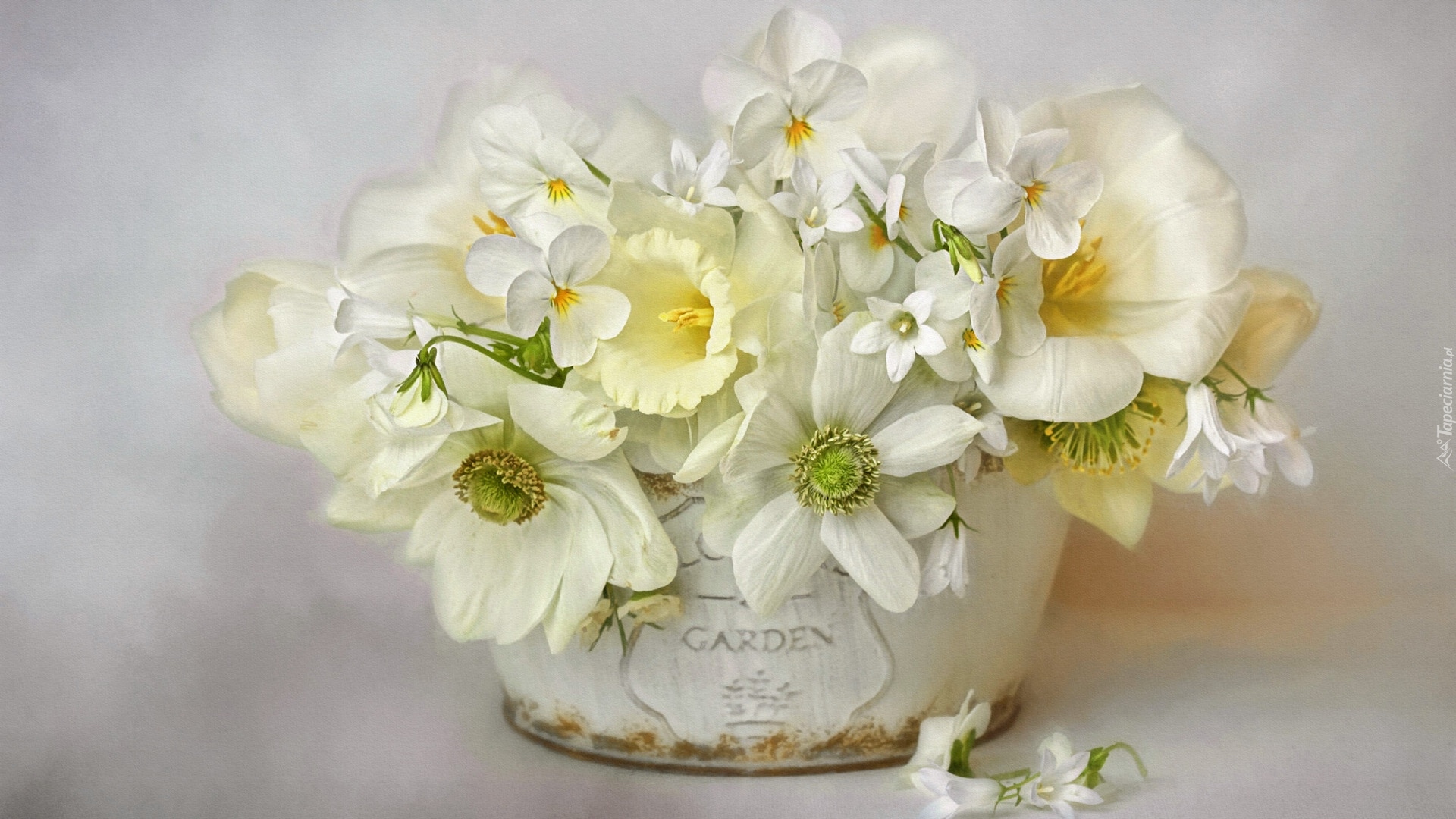 Edytor tapety: Bukiet białych kwiatów w doniczce