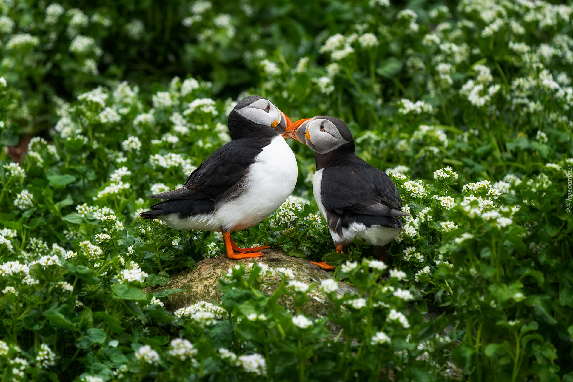 Edytor tapety: Dwa maskonury pośród kwiatów