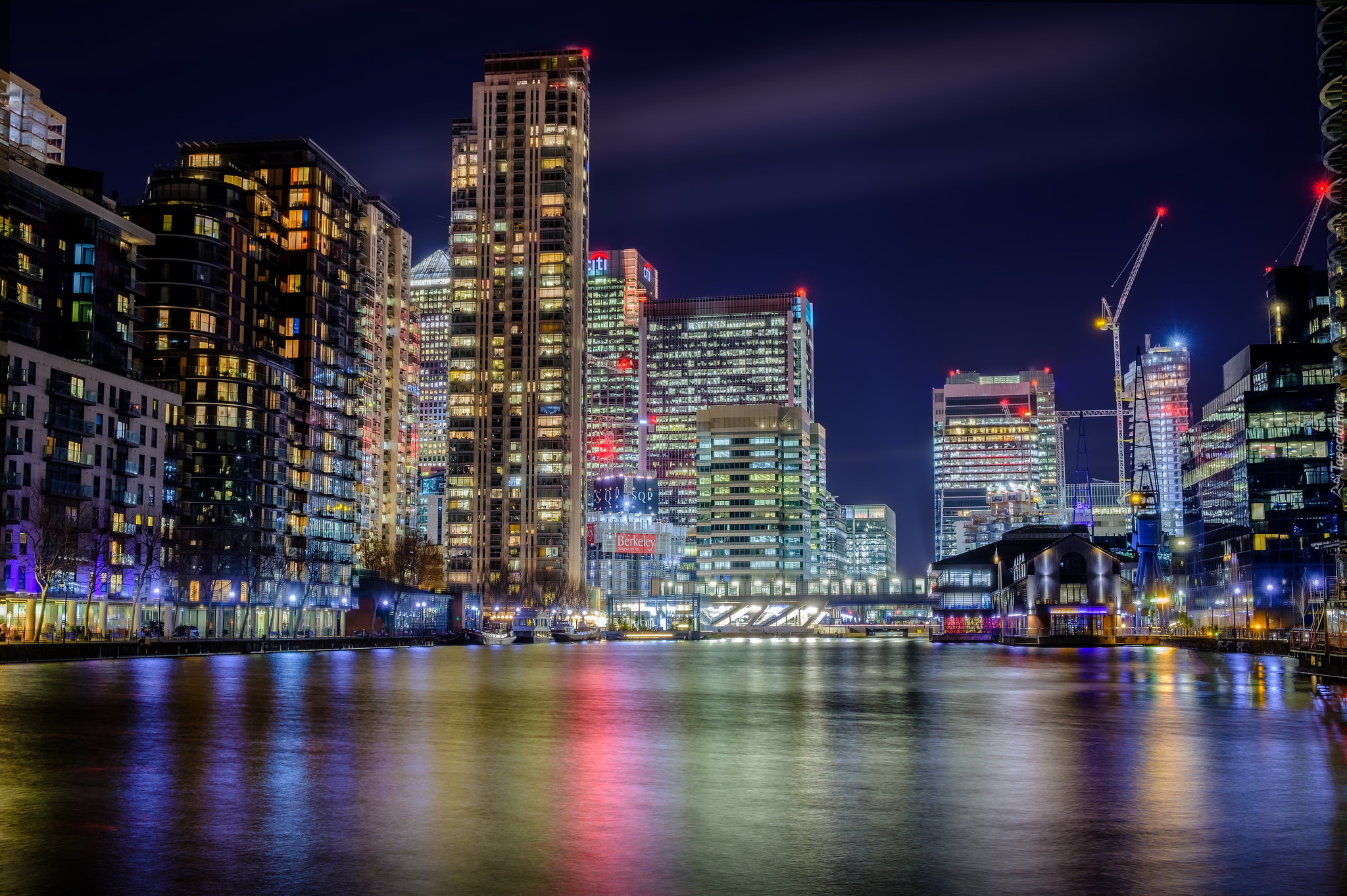 Edytor tapety: Oświetlone wieżowce nad dokiem Millwall w Londynie