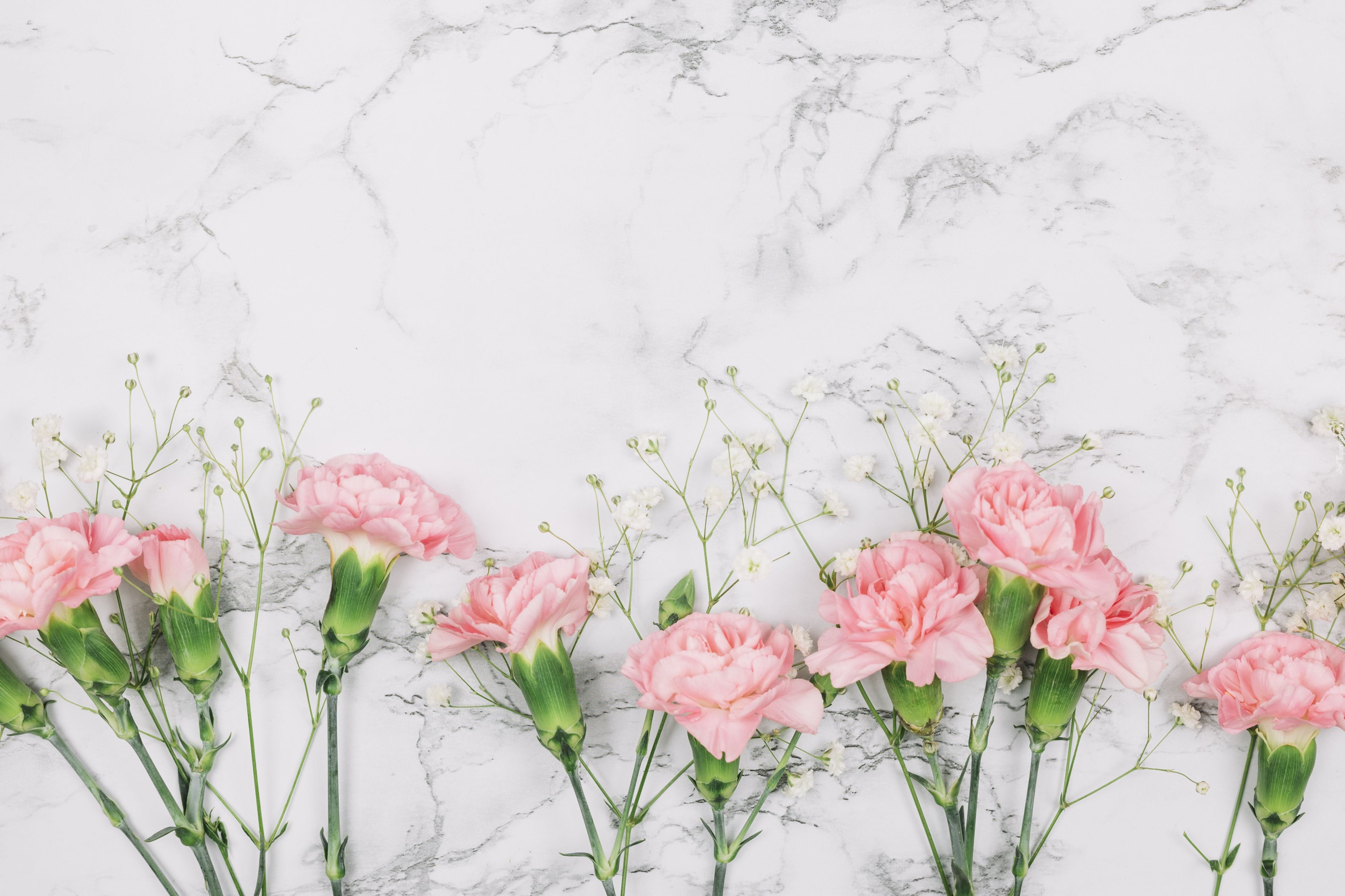 Edytor tapety: Różowe goździki na marmurkowym tle